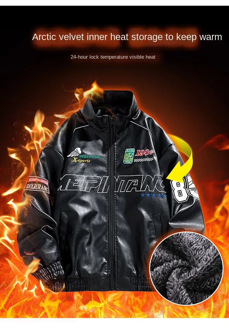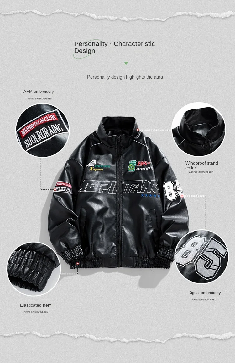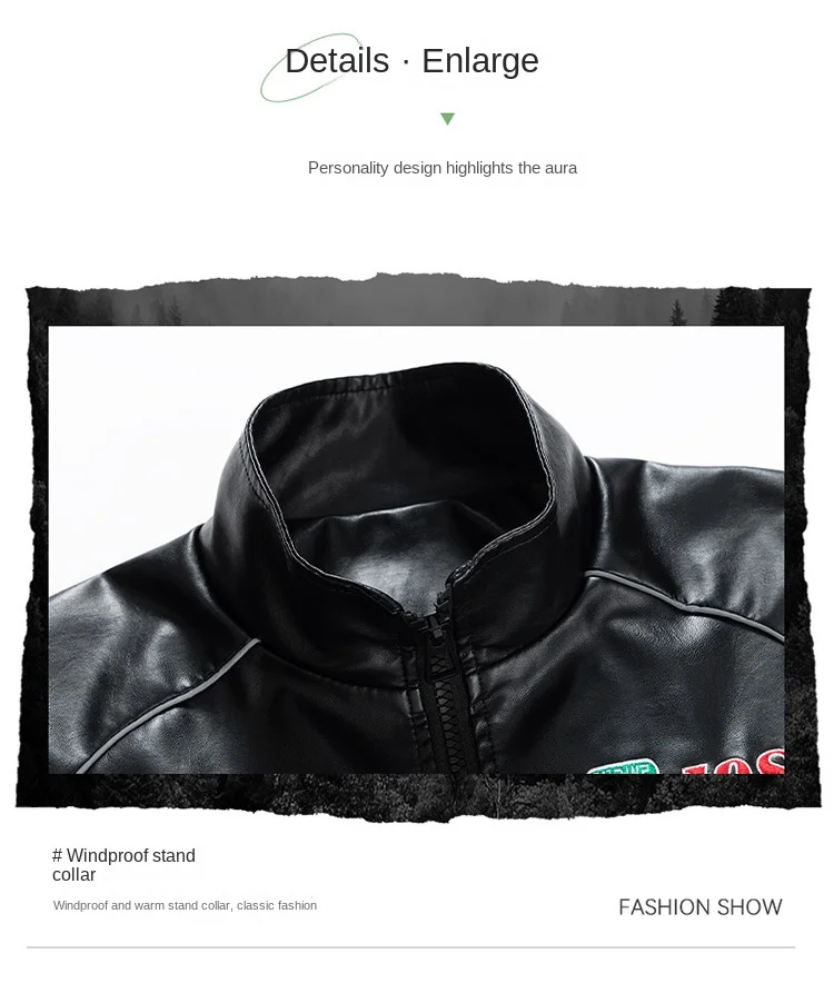 2024 Cross-Border Explosions Men’s Motorcycle Jacket Korean Slim Fit Fleece-Lined Zipper Fashionable Embroidered Leather