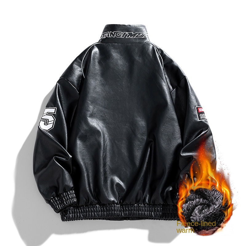 2024 Cross-Border Explosions Men’s Motorcycle Jacket Korean Slim Fit Fleece-Lined Zipper Fashionable Embroidered Leather