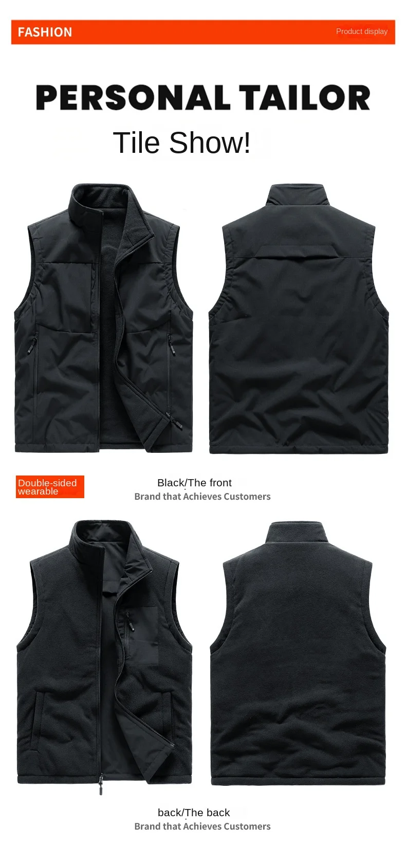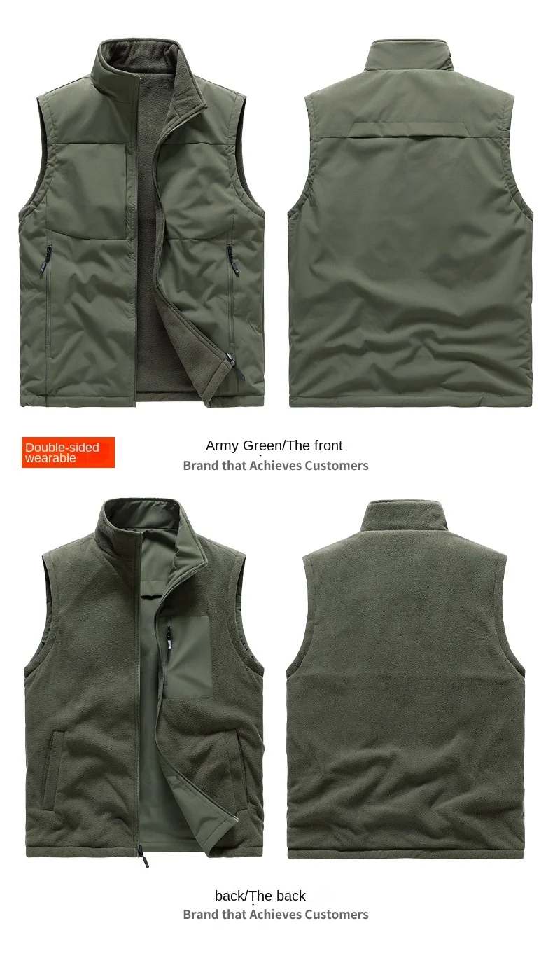 2024 Fall/Winter Casual Household Outer Wear New Double-Sided Fleece Vest Mandarin Thickened Fleece-Lined Sleeveless Heated Vest