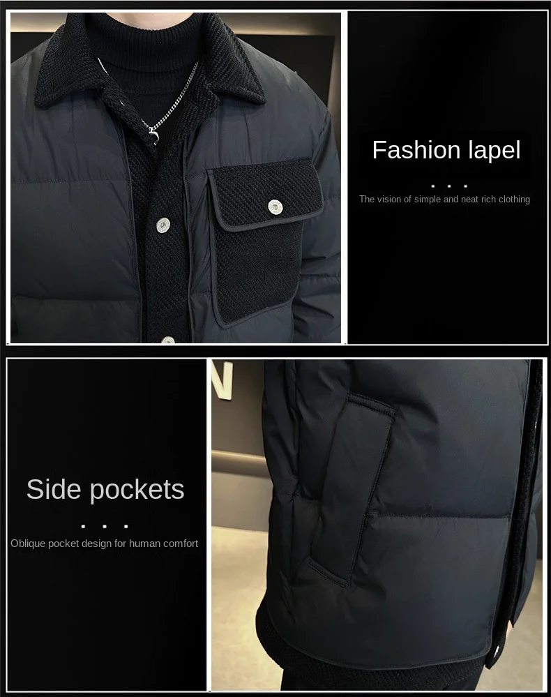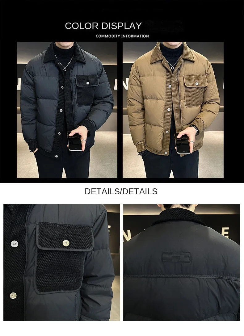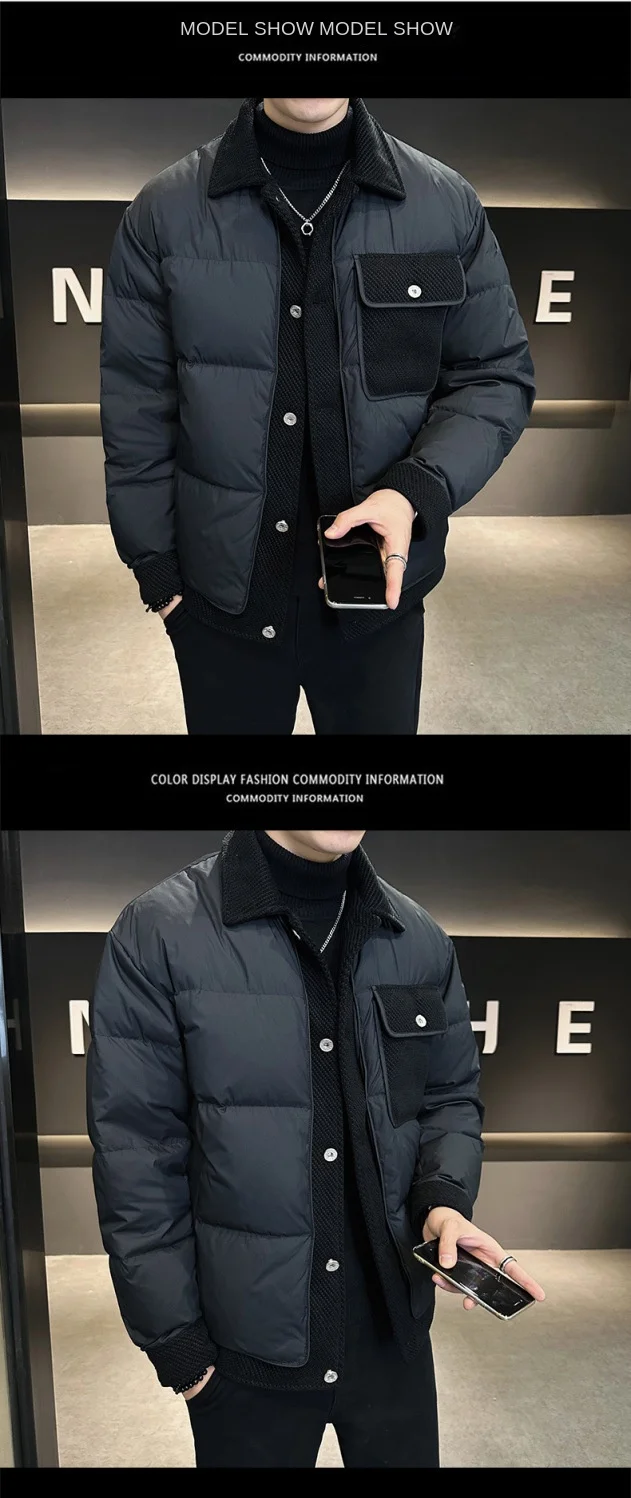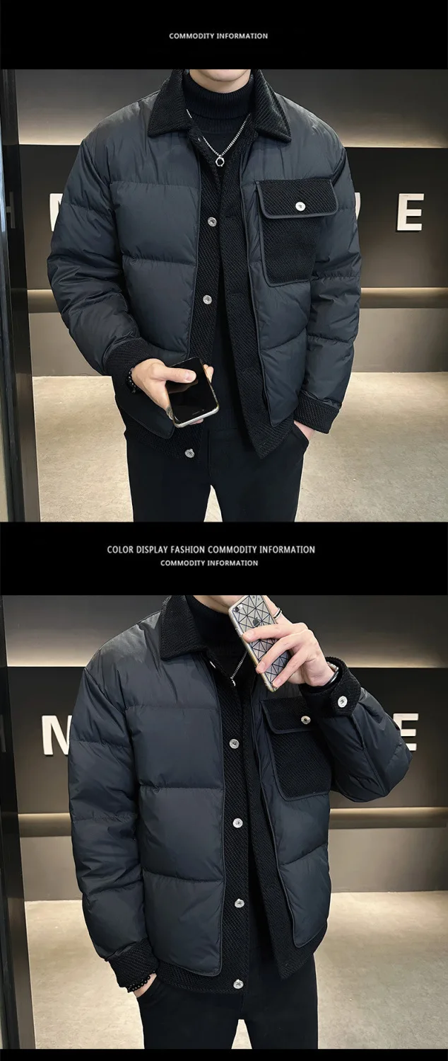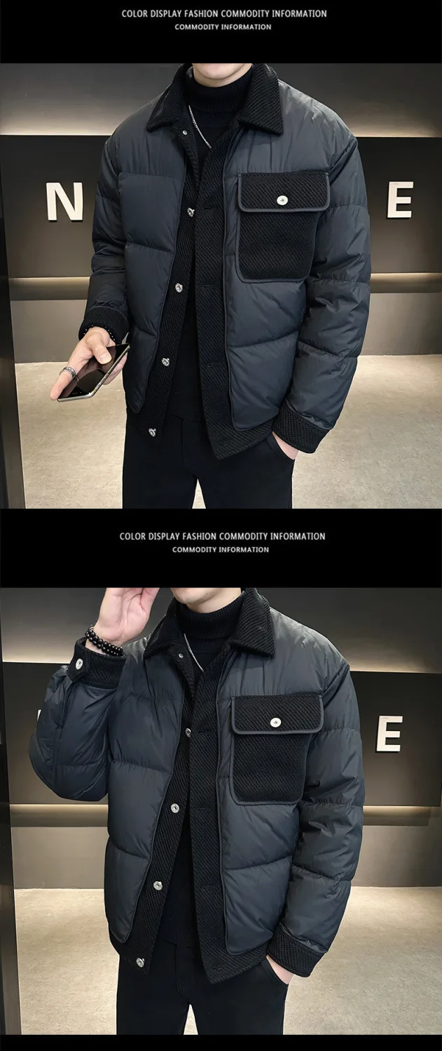 2024 Men’s Casual Breathable Winter Short Jacket New Lightweight Warm Laps Top with Stitching Design Down Coats Down Jacket