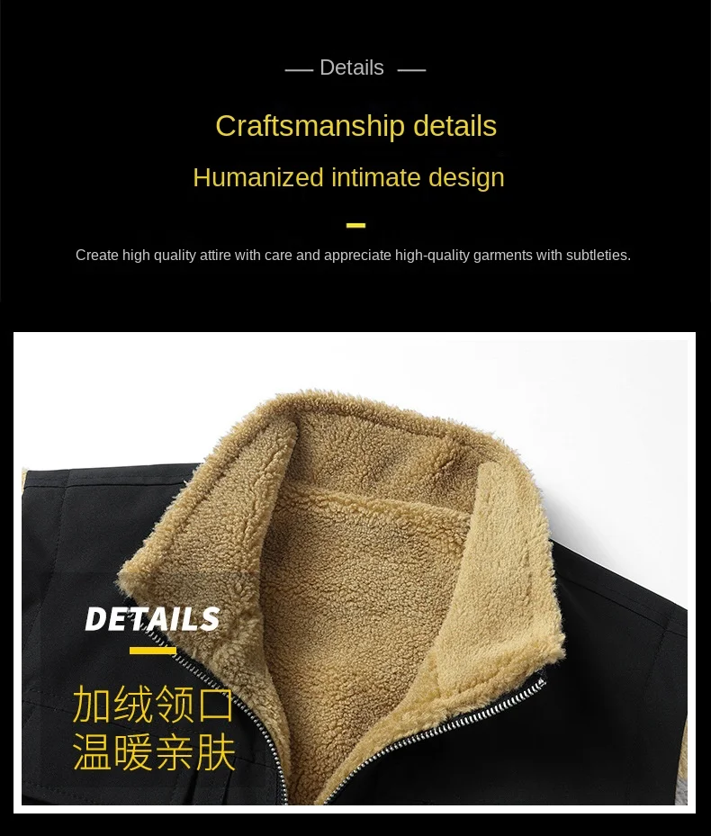 2024 Men’s Ultrasonic Fleece-Lined Graphene Vest V-Neck Collar Logo Casual Winter Direct Stock Canvas Outer Wear for Work Horse