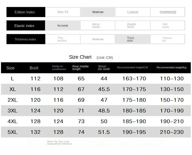 | Size | L, XL, 2XL, 3XL, 4XL, 5XL |