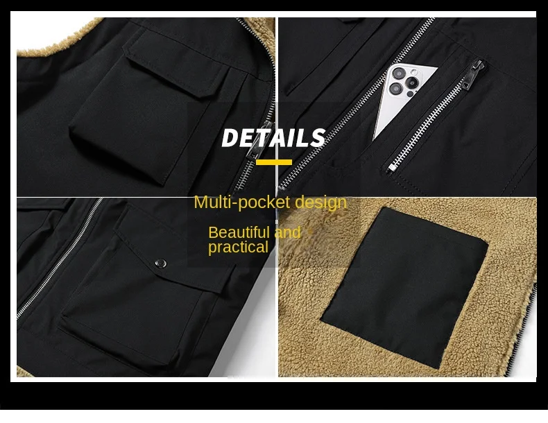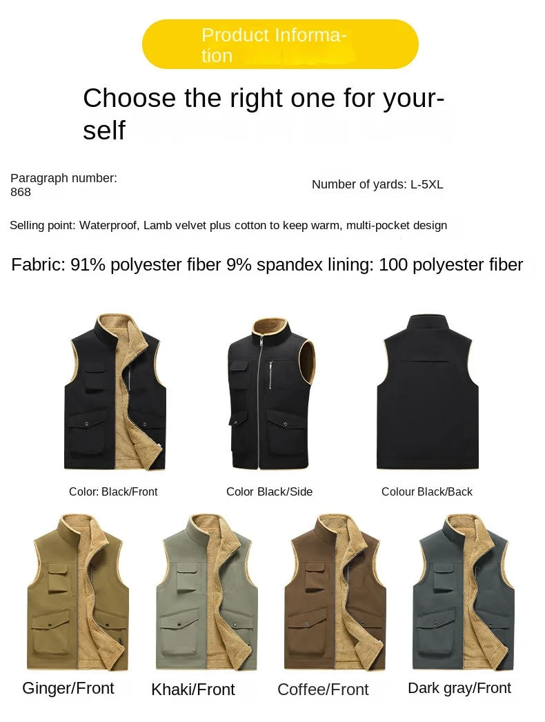 | Color | Black-lamb fleece vest, Coffee-lambskin vest, Dark gray-lamb fleece vest, Ginger-lamb fleece vest, Khaki-lamb fleece vest |