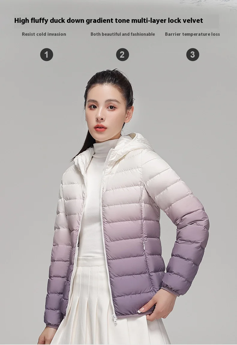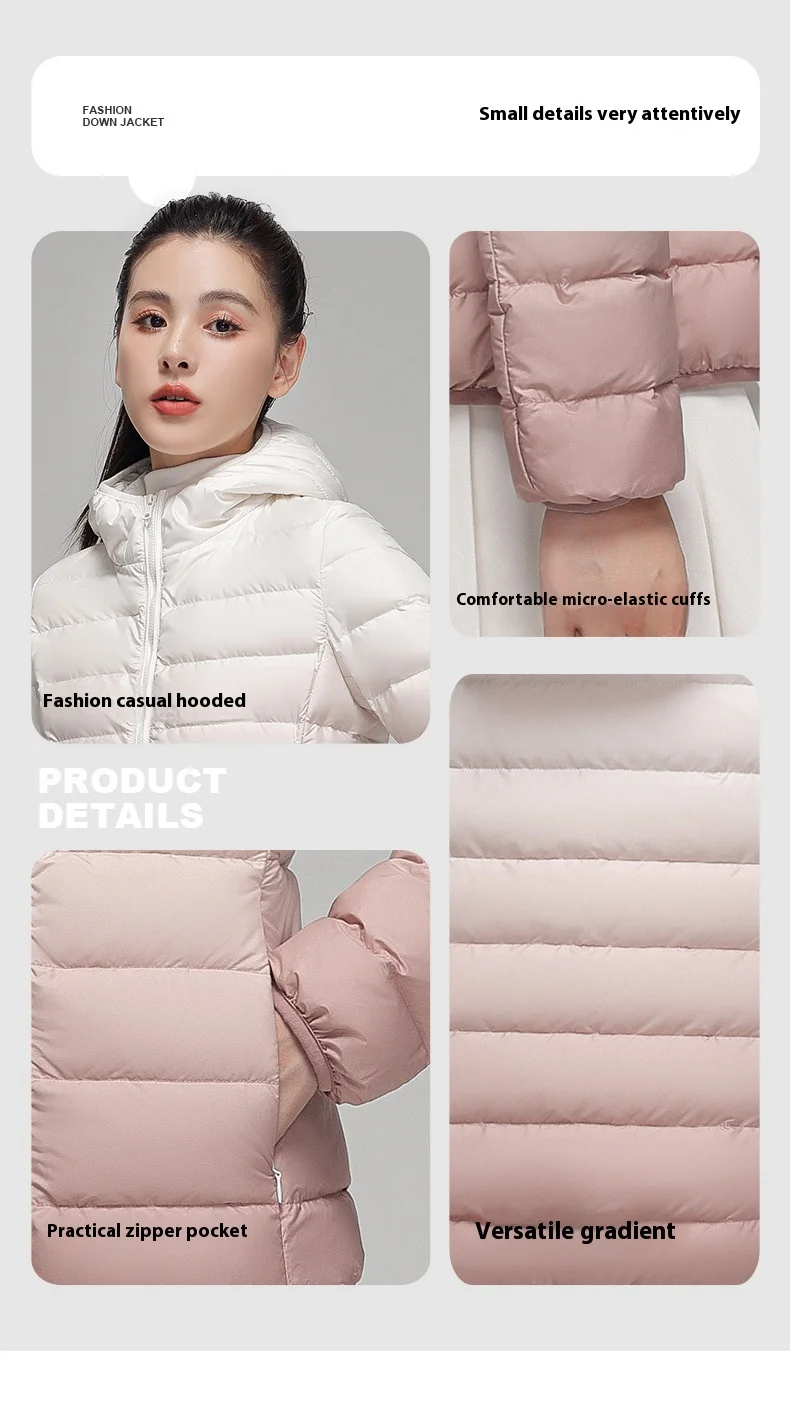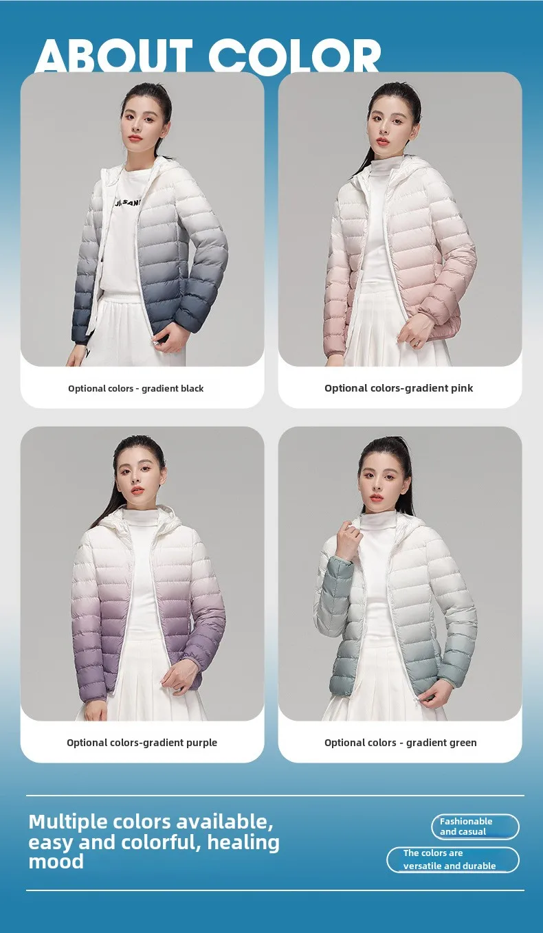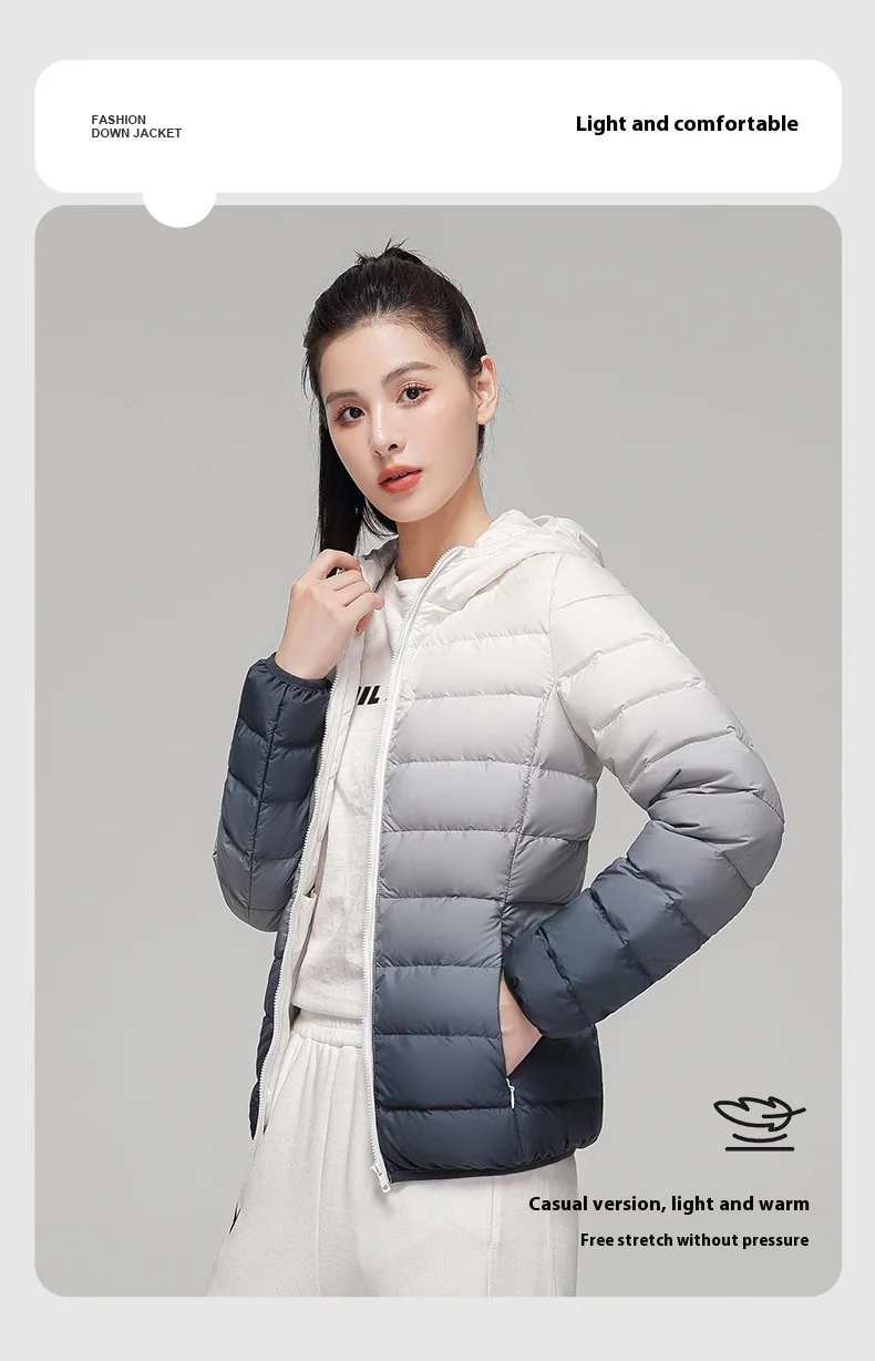 2024 New Arrival Gradient Color Varsity Puffer Jacket Shorts Fashionable Hooded Heattech Outerwear Zippers Light Snake Skin