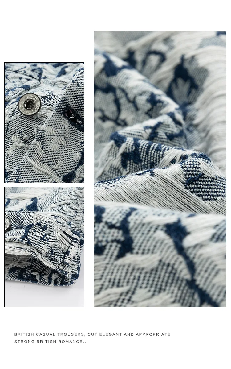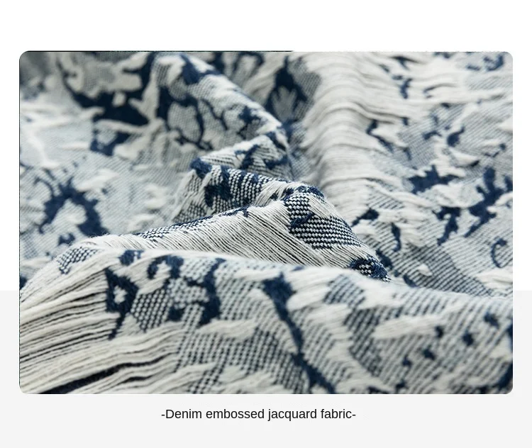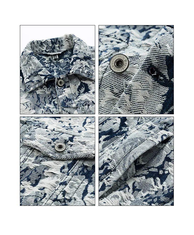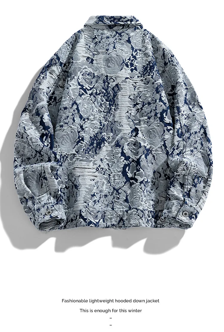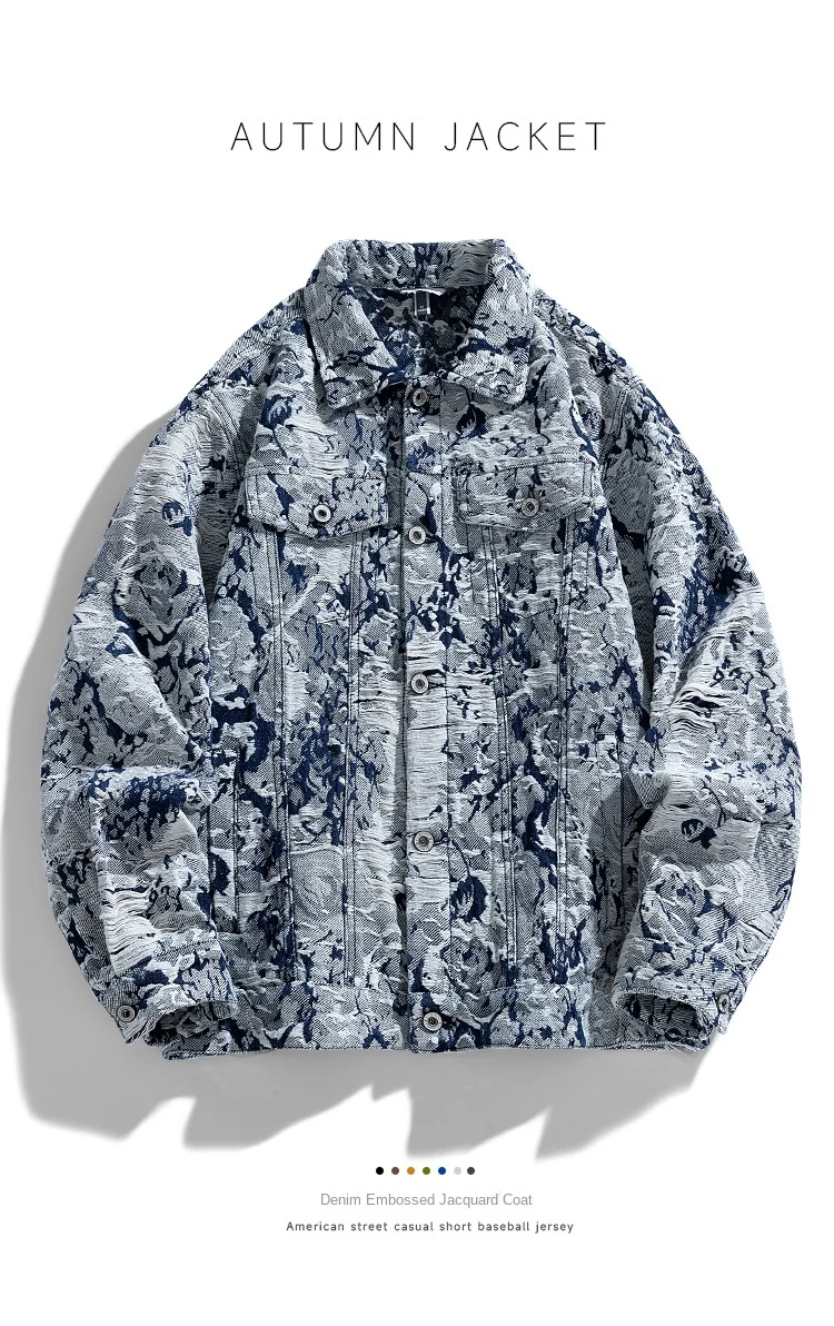2024 Spring/Autumn Jacquard Denim Jacket for Men XL American Retro High Street Rock Style Loose Hip Hop Varsity Jacket Stand