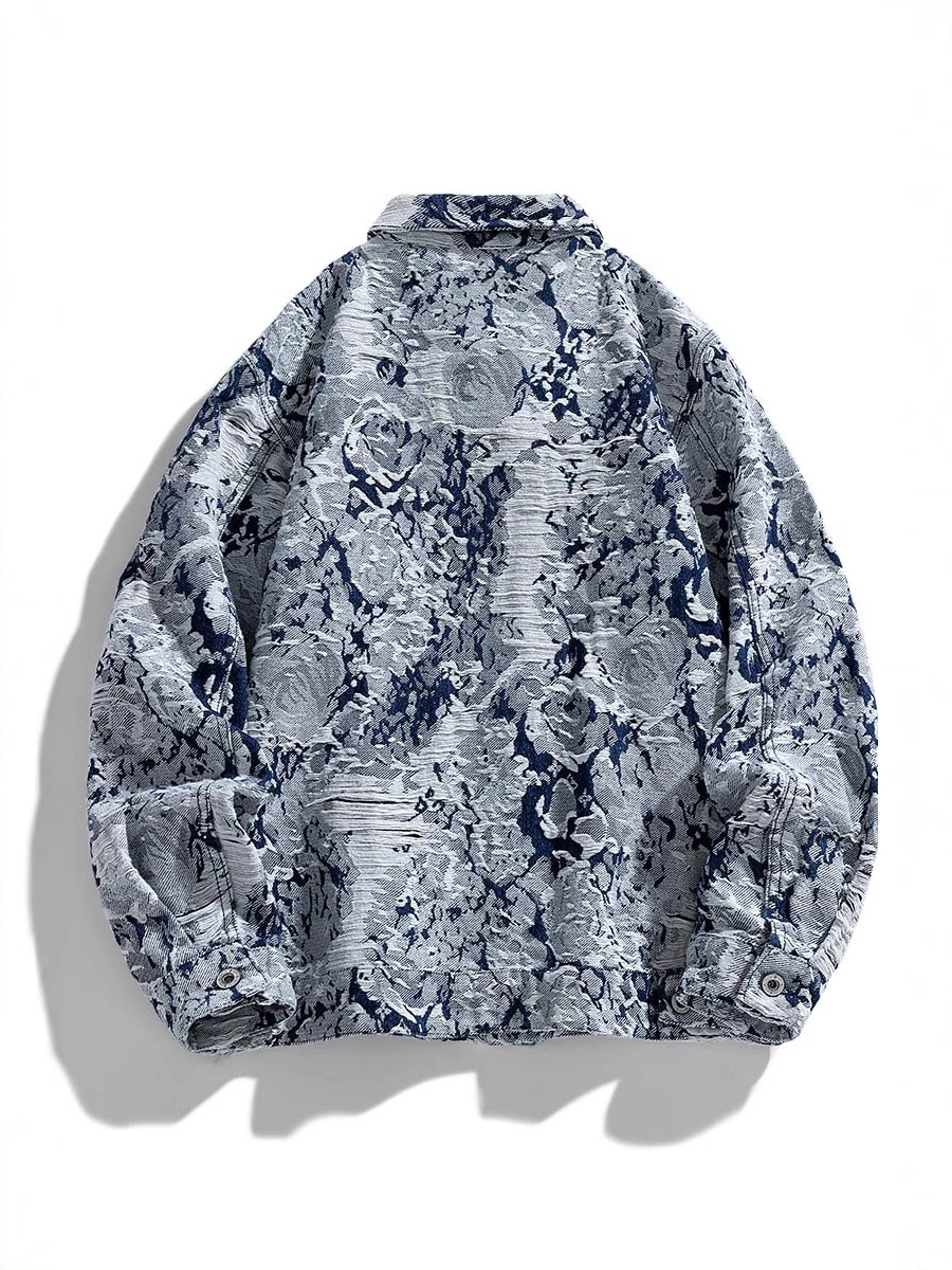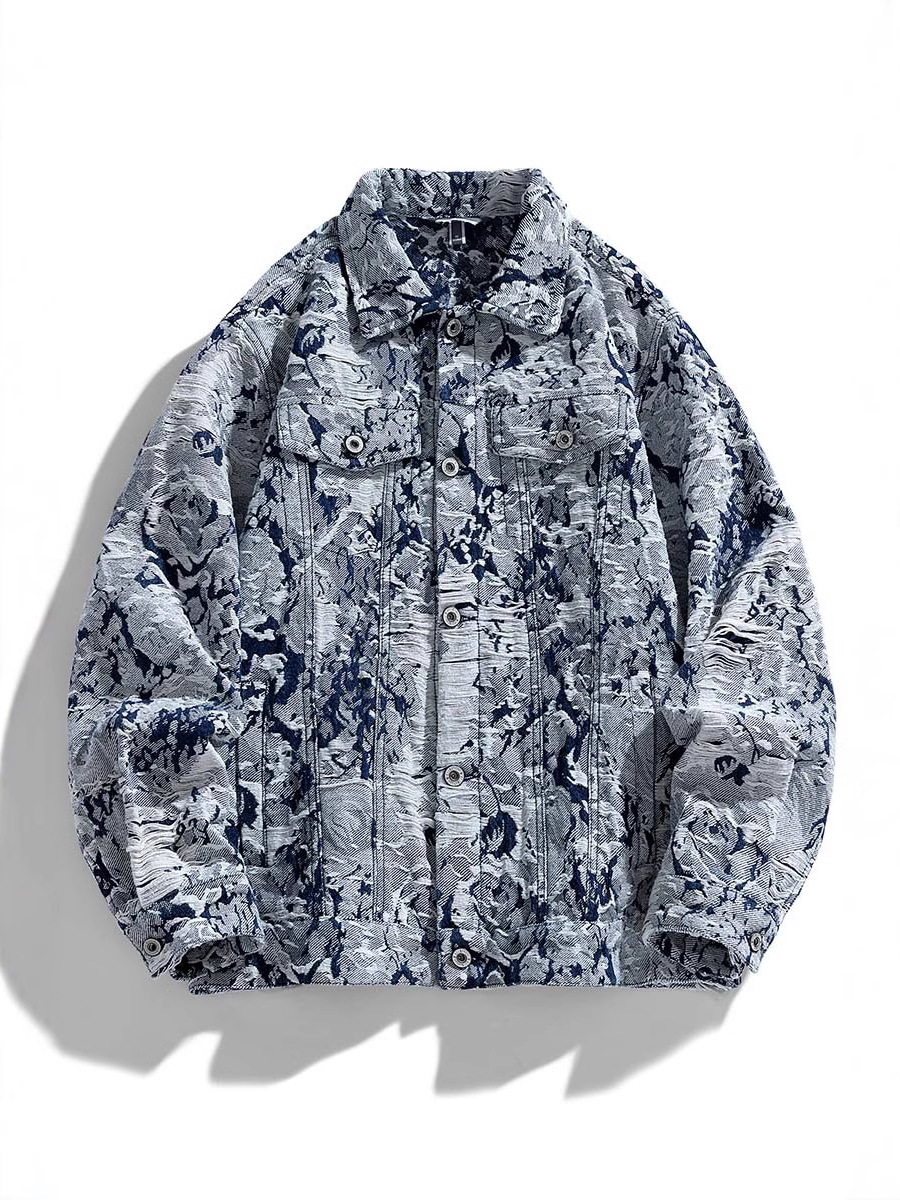 2024 Spring/Autumn Jacquard Denim Jacket for Men XL American Retro High Street Rock Style Loose Hip Hop Varsity Jacket Stand