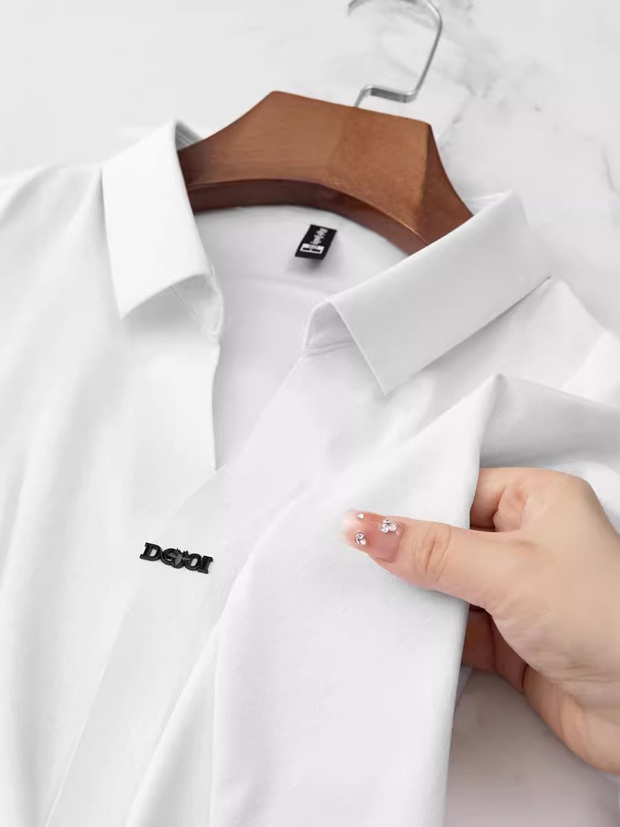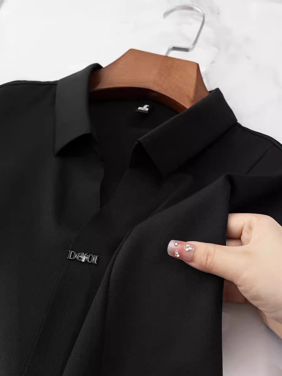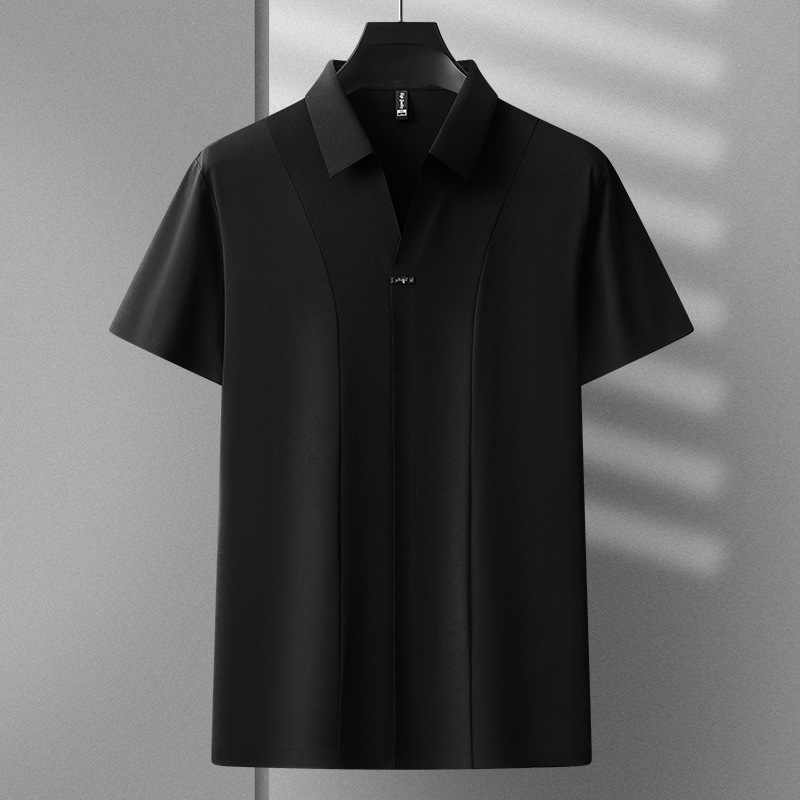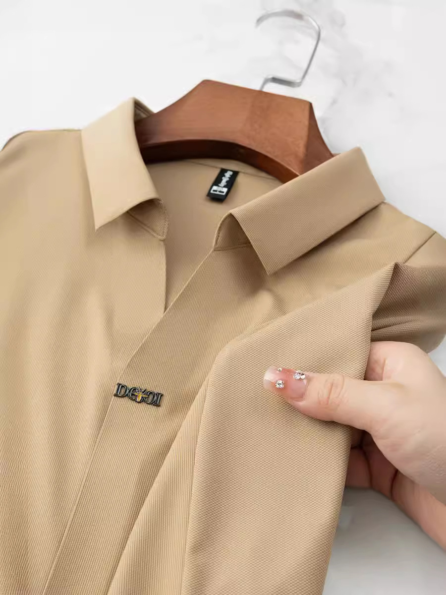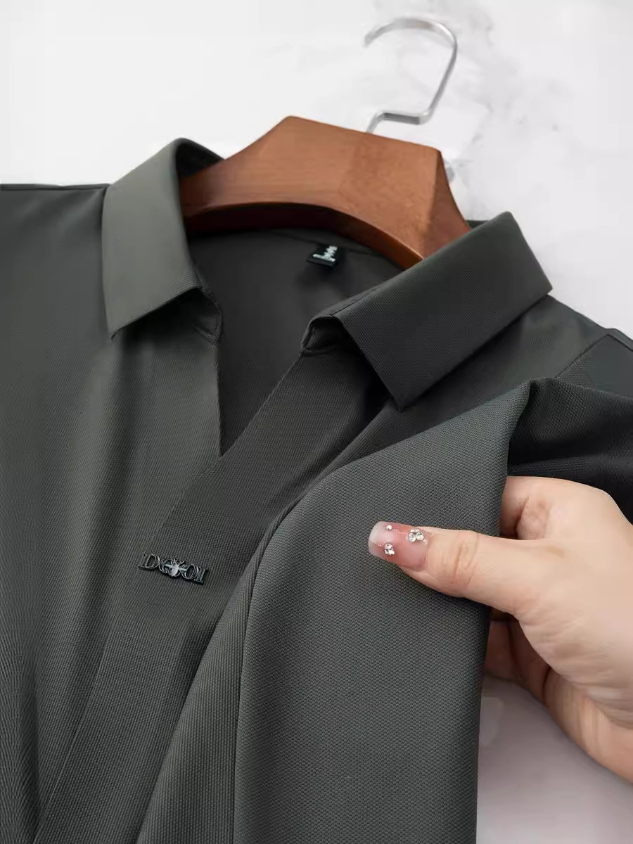 2024 Summer Trendy Men’s Polo Shirt V-Neck High-Elasticity Jersey Short-Sleeved with Draped Ice Silk High-Grade Sense Traceless