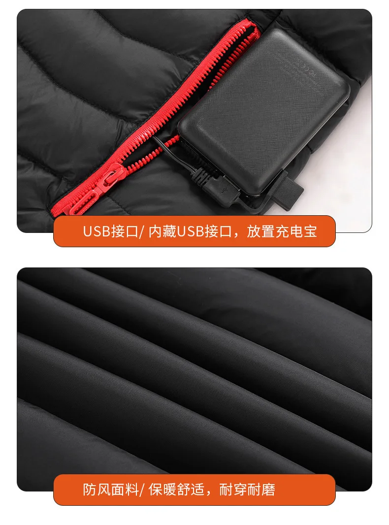 2024 USB Rechargeable Winter Windproof Carbon Fiber Jacket for Women Casual Stand 11 Zones Smart Heating Cotton-Padded Zipper