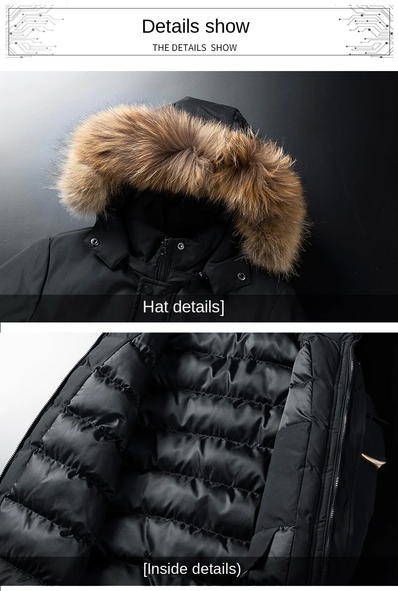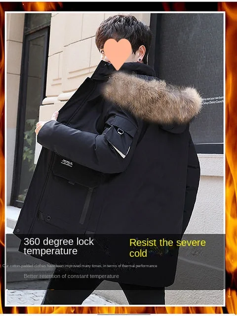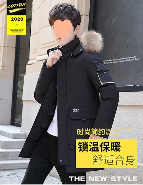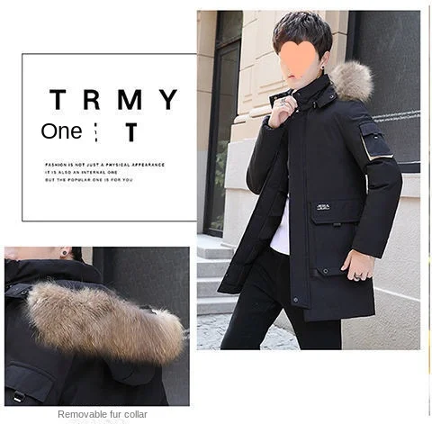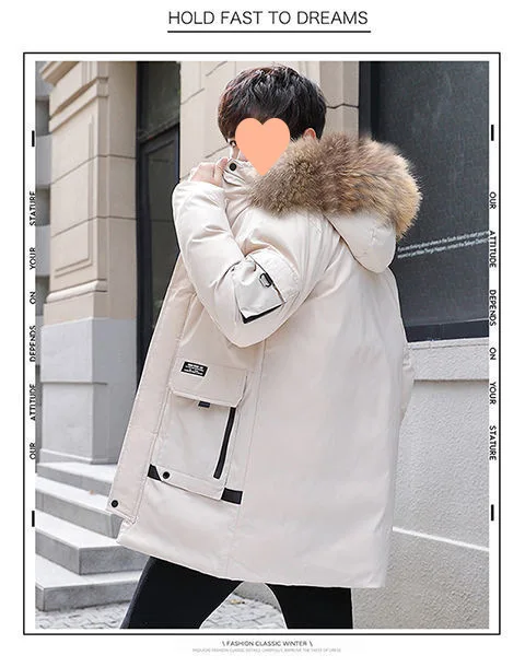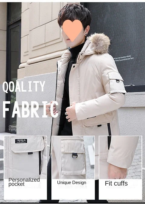 2024 Winter Korean Fashion Men’s Plus Size down Coat Waterproof Puffer Hood with Thickened Cotton Logo Decoration Long Clothing