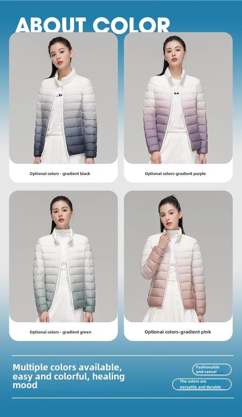 Be the first to review “2024 Women’s Light Down Puffer Jacket Hooded Stand Collar Gradient Short Coat Fashionable Autumn Winter Warm Duck Clothing”