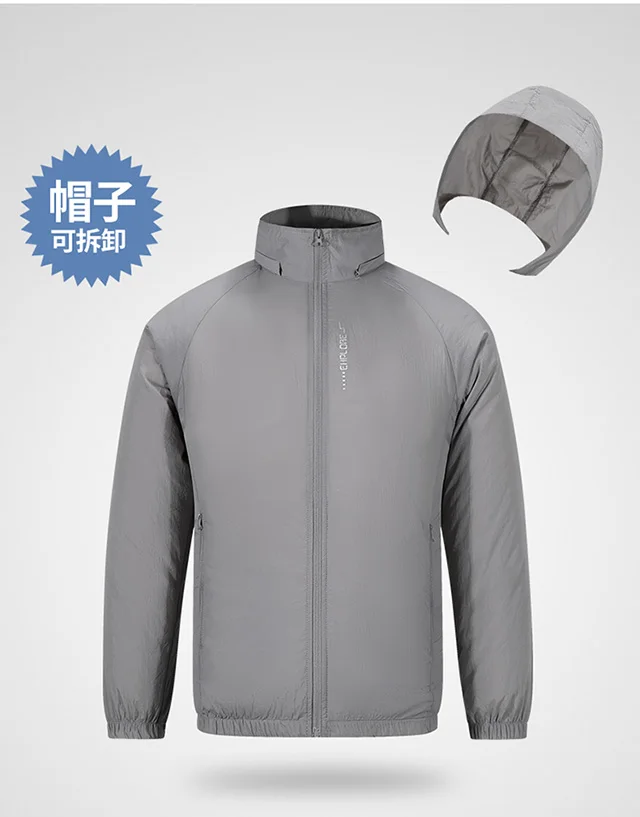 2025 Men’s Summer Casual Jackets Rabbit Fur Stand Collar Sun Protection Smart Thin Fabric Outdoor Air Conditioning Front Logo
