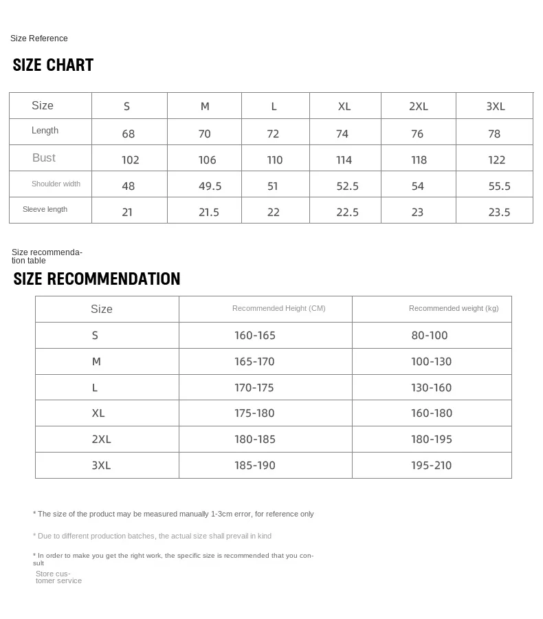 S, M, L, XL, 2XL, 3XL