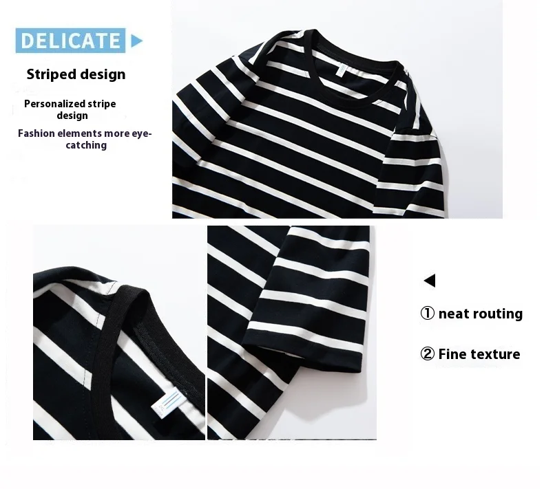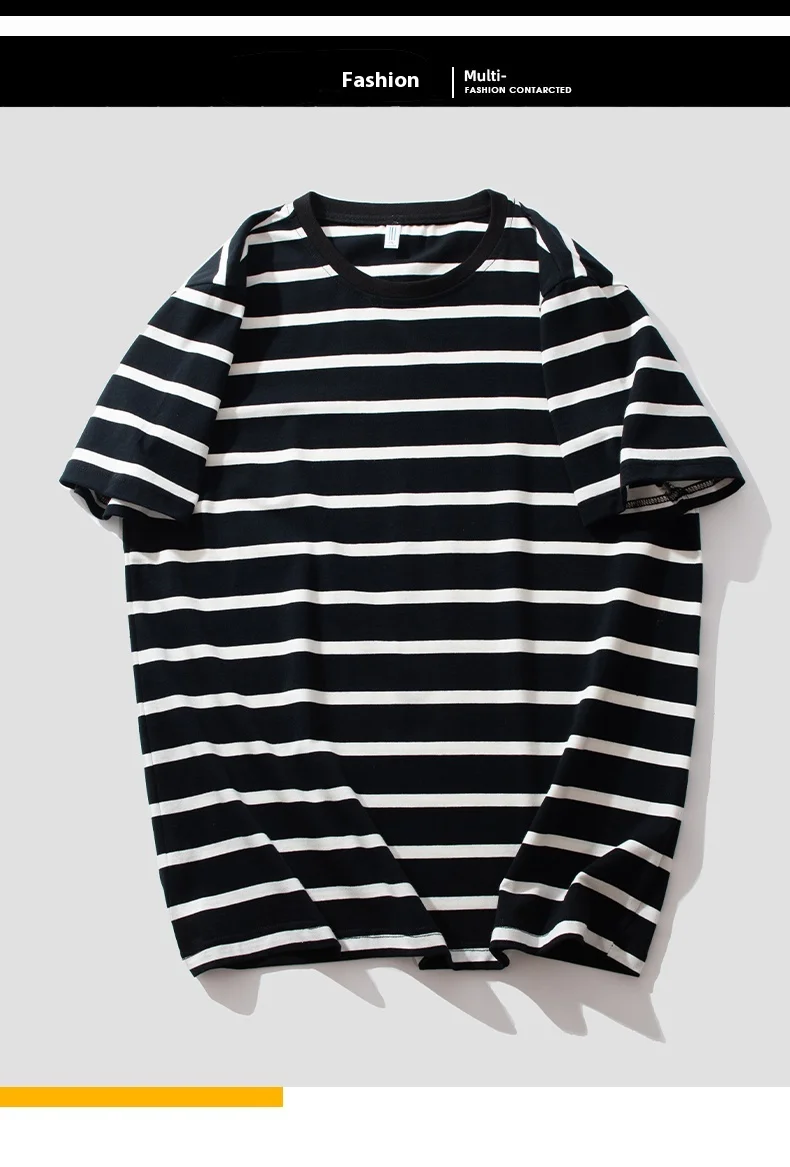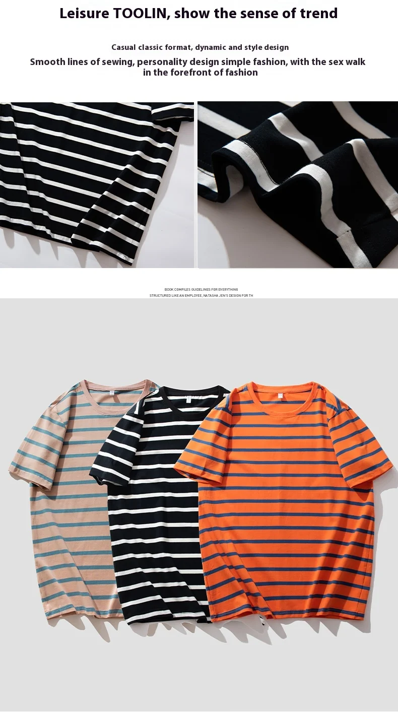 2025 Summer Collection High-End Men’s Short Sleeve for Polo T-Shirt Loose Plus Size Thin Striped Crewneck Breathable Knitted Cot
