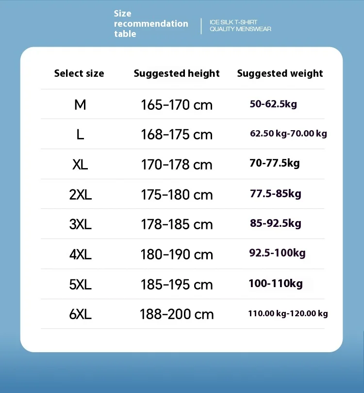 M, L, XL, 2XL, 3XL, 4XL, 5XL, 6XL
