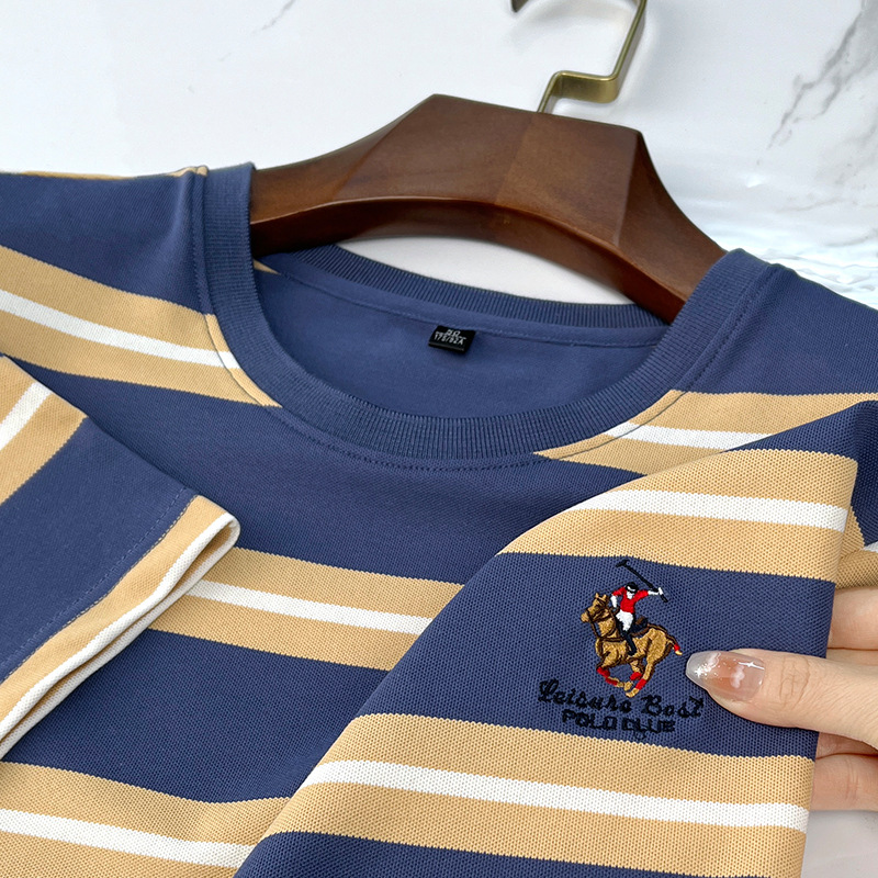 2025 Summer Men’s Casual Plus Size for Polo T-Shirt Breathable Knitted Fabric with Printed Design