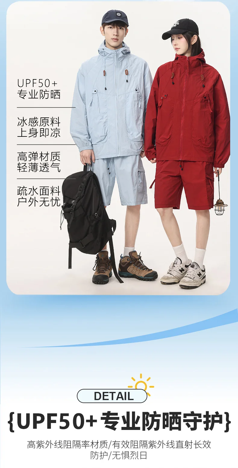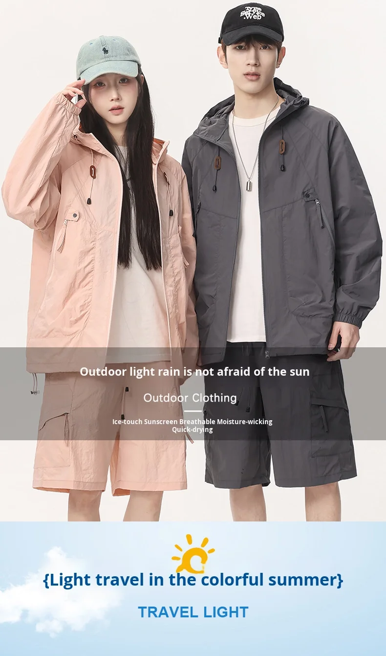2025 Summer Season New High Quality Breathable Hooded Top for Couples Sun Protection Clothing Zipper for Outdoor Casual
