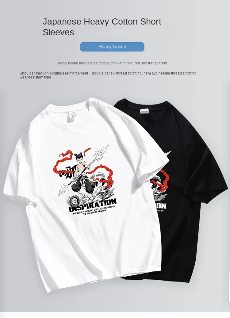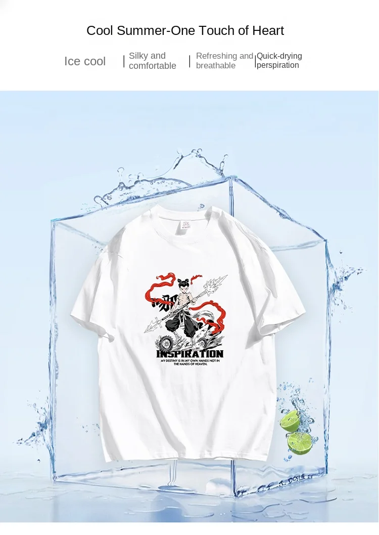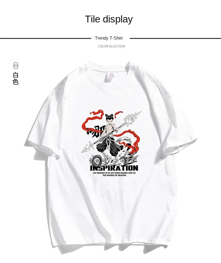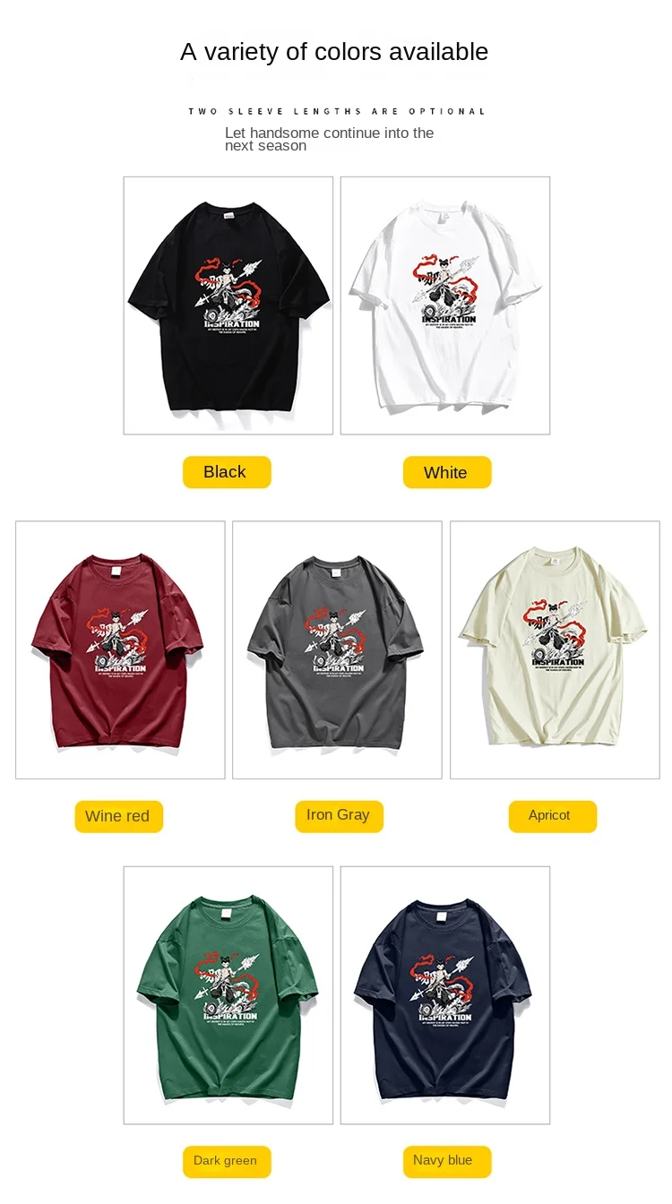 260g Pure Cotton Men’s Summer T-shirt 25 Explosions Printed Short-Sleeved Casual Loose Guofeng Top Cartoon Pattern Breathable