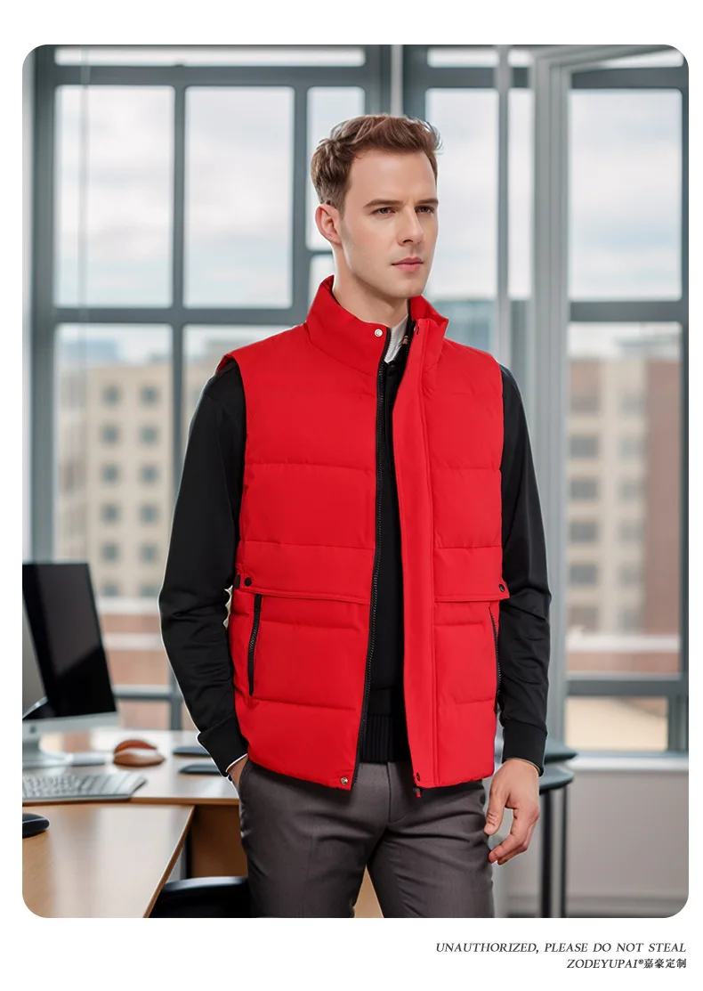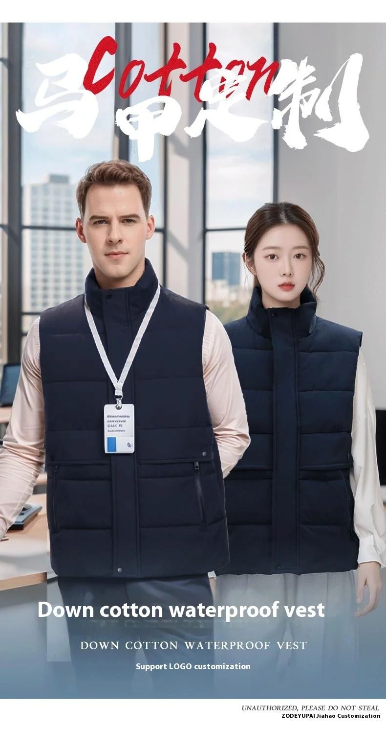 Autumn Casual Work Clothes Set for Men Zipper Work Vest Heattech Printed Logo Thickened Cotton Waterproof Sleeveless Flap Pocket