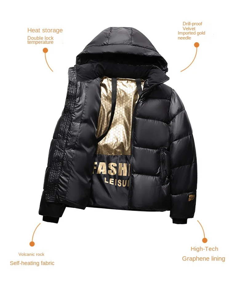 Be the first to review “Autumn Winter Coat Black Gold Cotton Graphene Technology Long Loose Thickened Youth Zipper All-Match Leisure Feather Hip Hop Air”