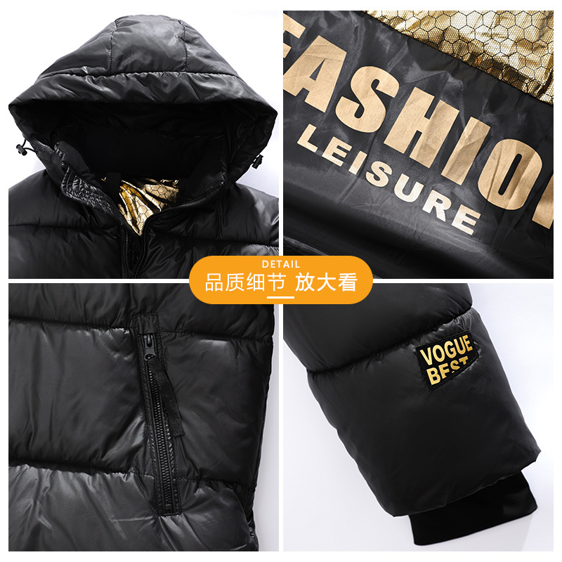 Autumn Winter Coat Black Gold Cotton Graphene Technology Long Loose Thickened Youth Zipper All-Match Leisure Feather Hip Hop Air
