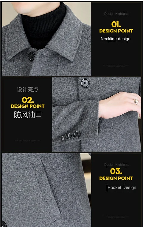 Autumn Winter High-Grade Men’s Cashmere Coat Long Mid-Length Windbreaker Button Lapel Design Single Breasted for Middle-Aged