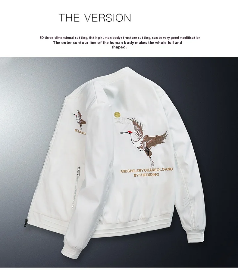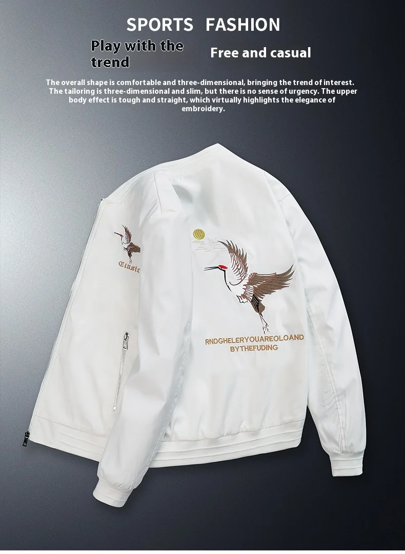 Autumn Winter Men’s Embroidered Velvet Baseball Jacket Stand Collar Youth Chinese Fashion Casual Clothing Hip Hop Varsity Warm