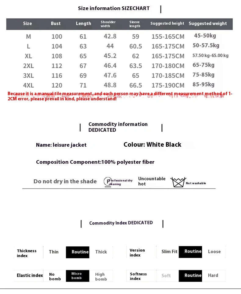 | Size | 2 XL, 3 XL, 4 XL, M, L, XL |