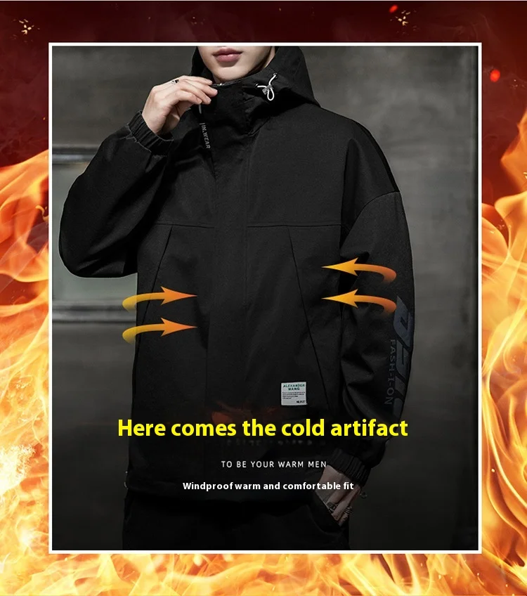 Autumn Winter Men’s Fleece-Lined Bomber Jacket Easy Match Workwear & Casual Cotton Coat Youth Windproof Thickened Coat