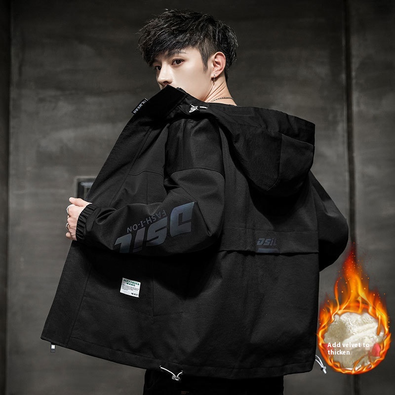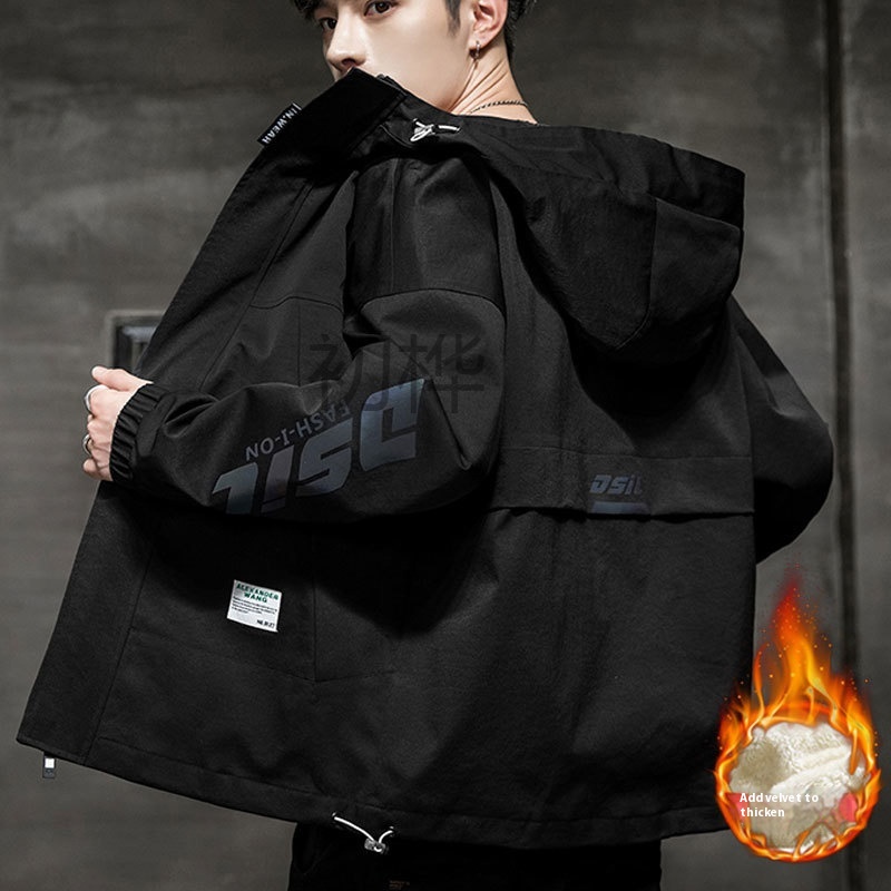 Autumn Winter Men’s Fleece-Lined Bomber Jacket Easy Match Workwear & Casual Cotton Coat Youth Windproof Thickened Coat