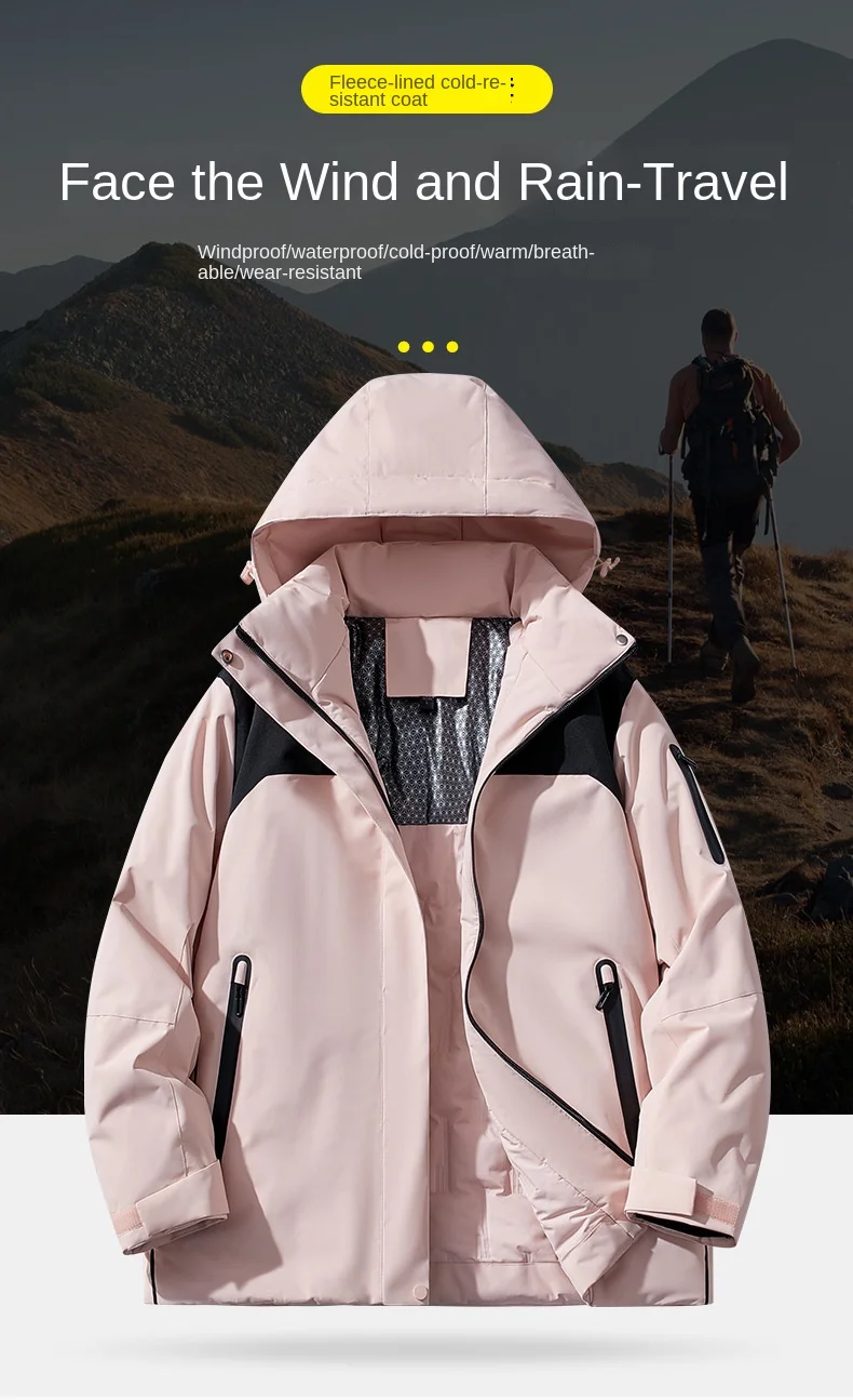 • 2024 Unisex Three-in-One Outdoor Assault Jacket Adults Men Women Autumn Winter Fleece-Lined Thickening Cotton Liner Two-Piece