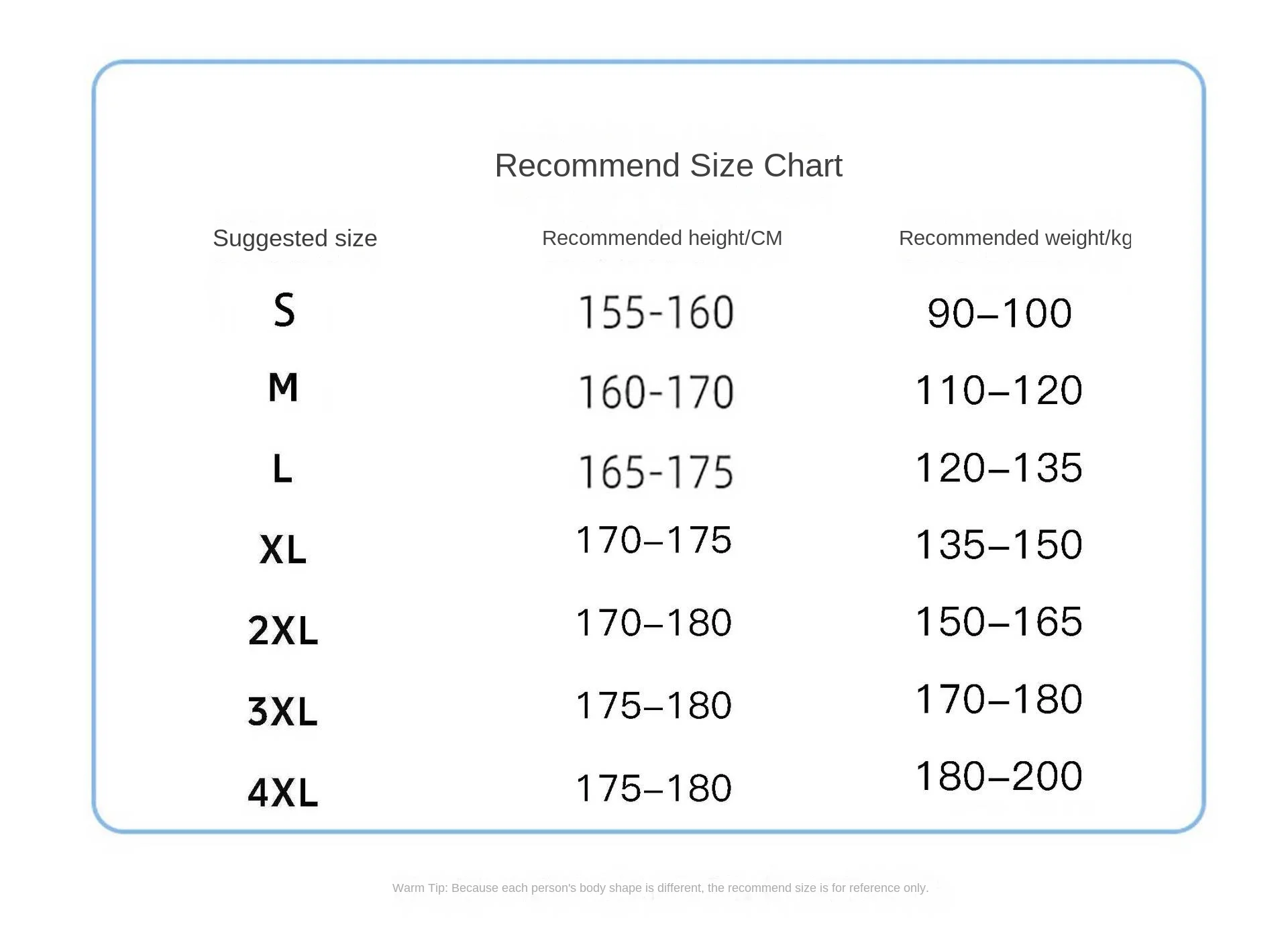 M, L, XL, 2XL, 3XL, 4XL, 5XL
