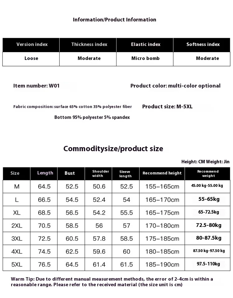| Size | M, L, XL, 2XL, 3XL, 4XL, 5XL |