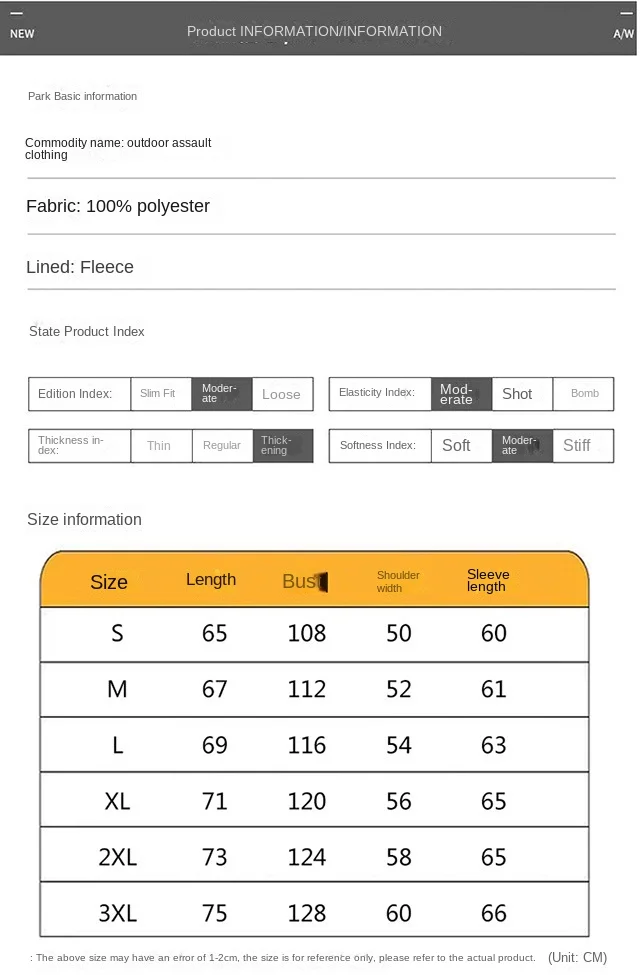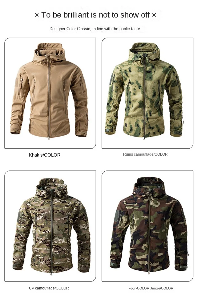 | Color | Army green, Black, Cp camouflage, Four-color jungle, Gray, khaki, Navy blue, Night camouflage, Python camouflage, Ruins camouflage |