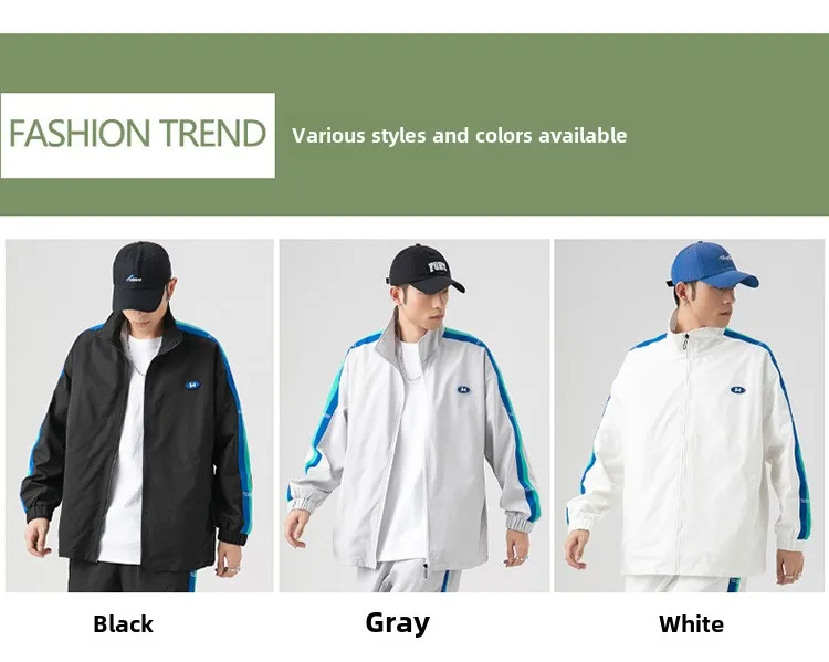 Brand New Men’s Casual Sportswear Jacket Autumn Woven Outwear with Fashionable Stripes Hoodie & Sweatshirt Set Arrival