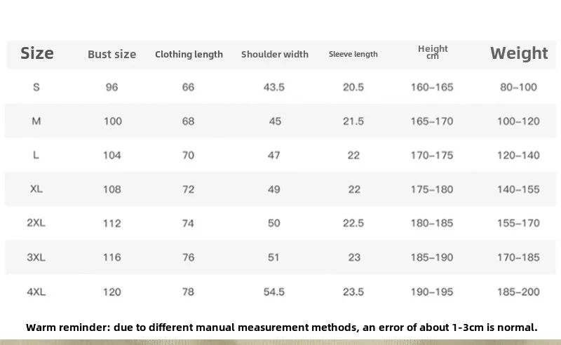 | Size | S, M, L, XL, 2XL, 3XL, 4XL |