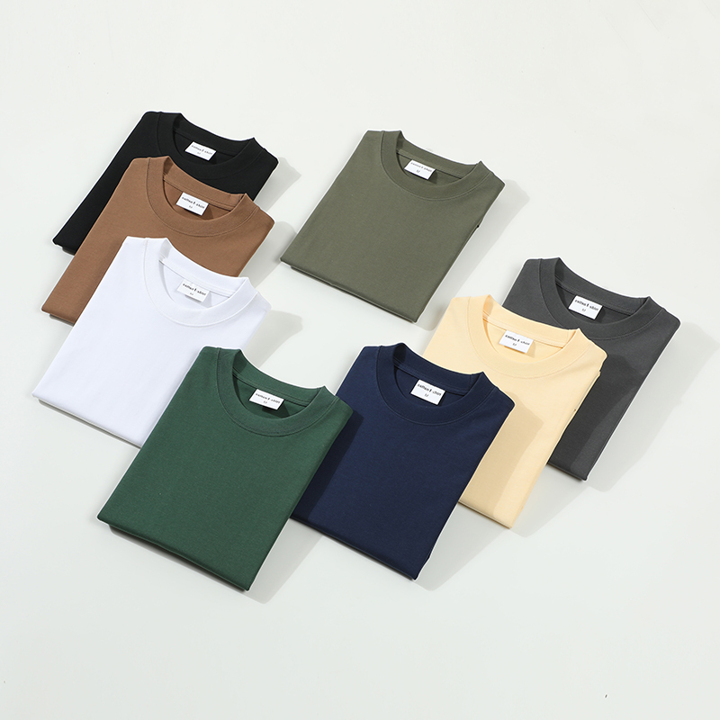 Casual 7A Pure Cotton Antibacterial Dyed Short Sleeve T-Shirt for Men Women Drop Shoulder Neck 320g Heavy Summer Style Knitted