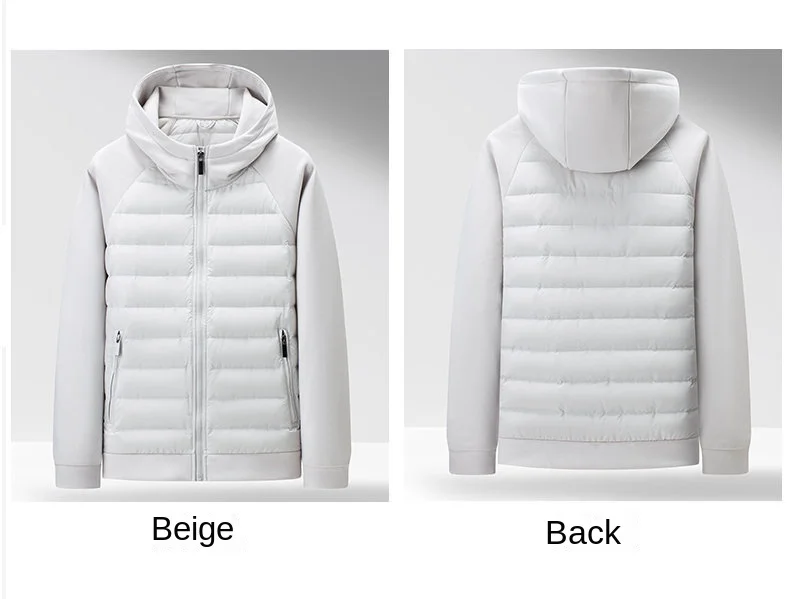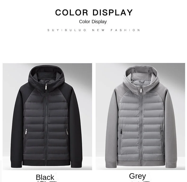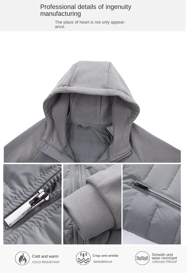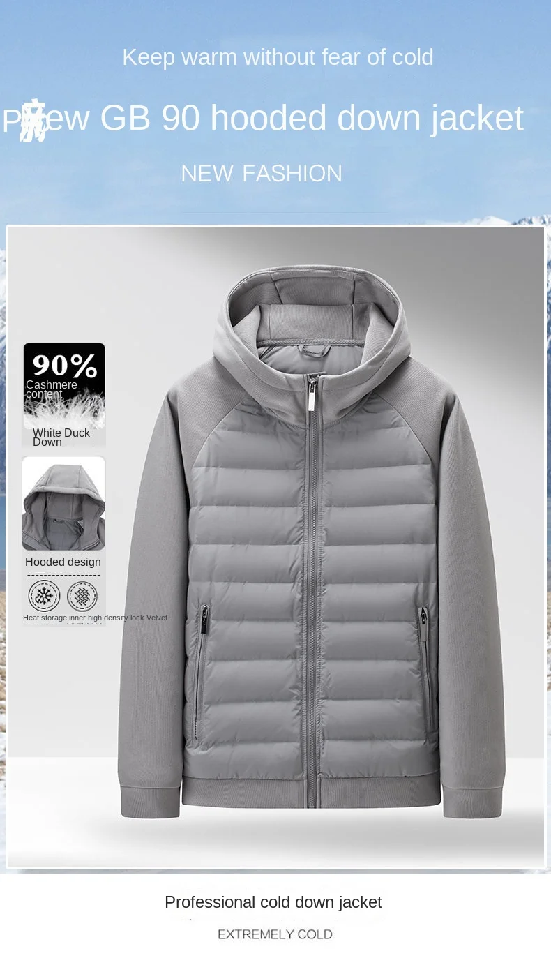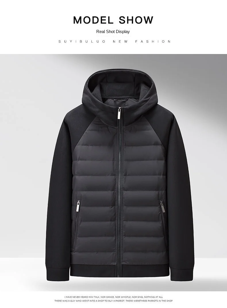 Casual Men’s Long Down Jacket with Breathable Velour Fabric Hood Zipper Closure Plus Size Polyester Filling Coats