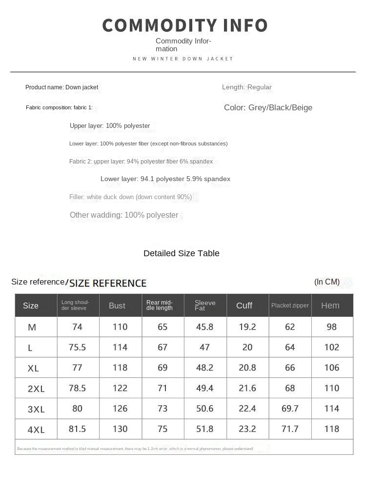 | Size | M, L, XL, 2XL, 3XL, 4XL |