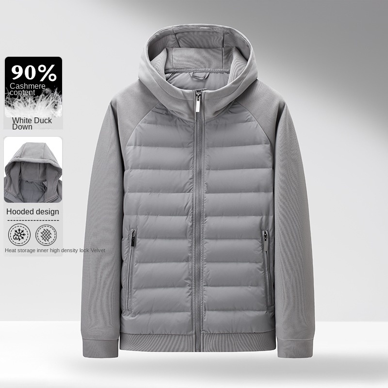 Casual Men’s Long Down Jacket with Breathable Velour Fabric Hood Zipper Closure Plus Size Polyester Filling Coats