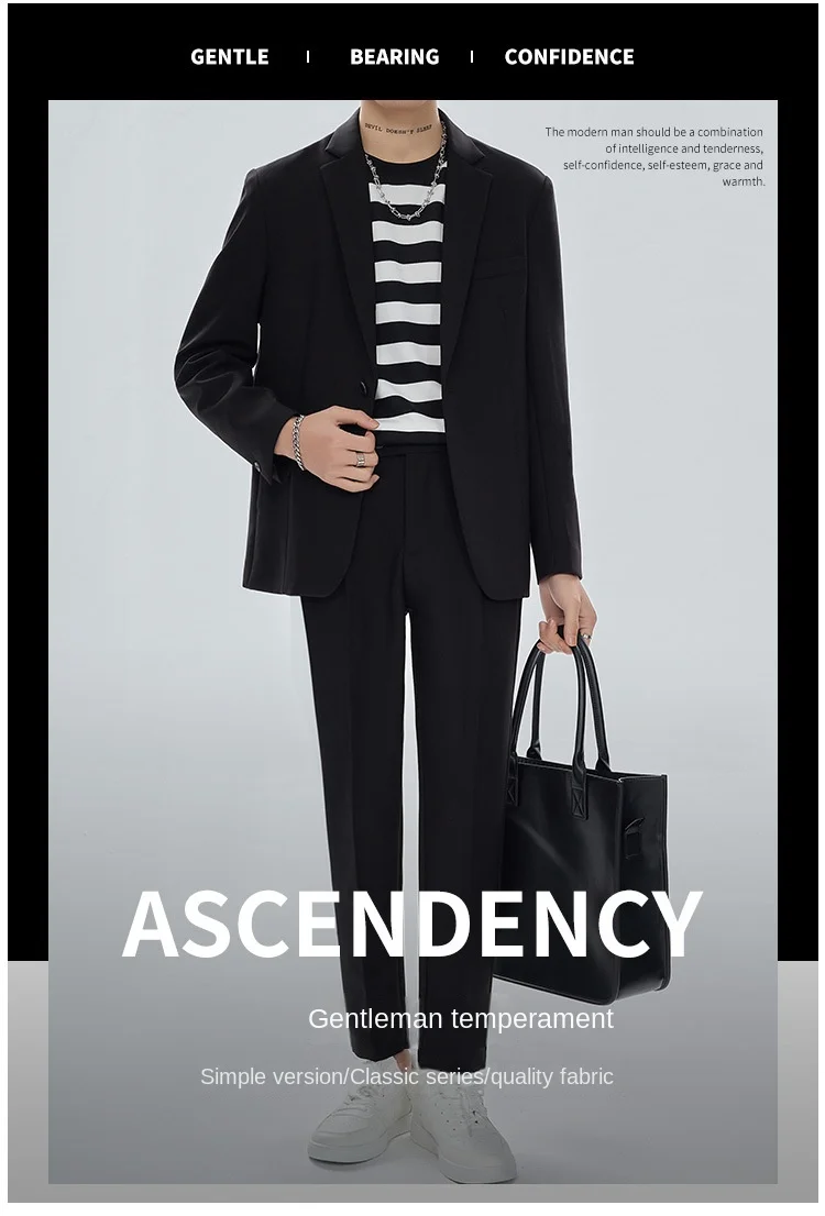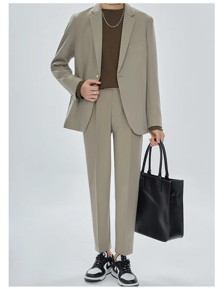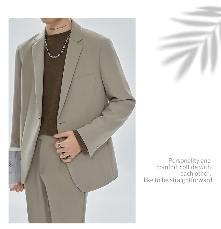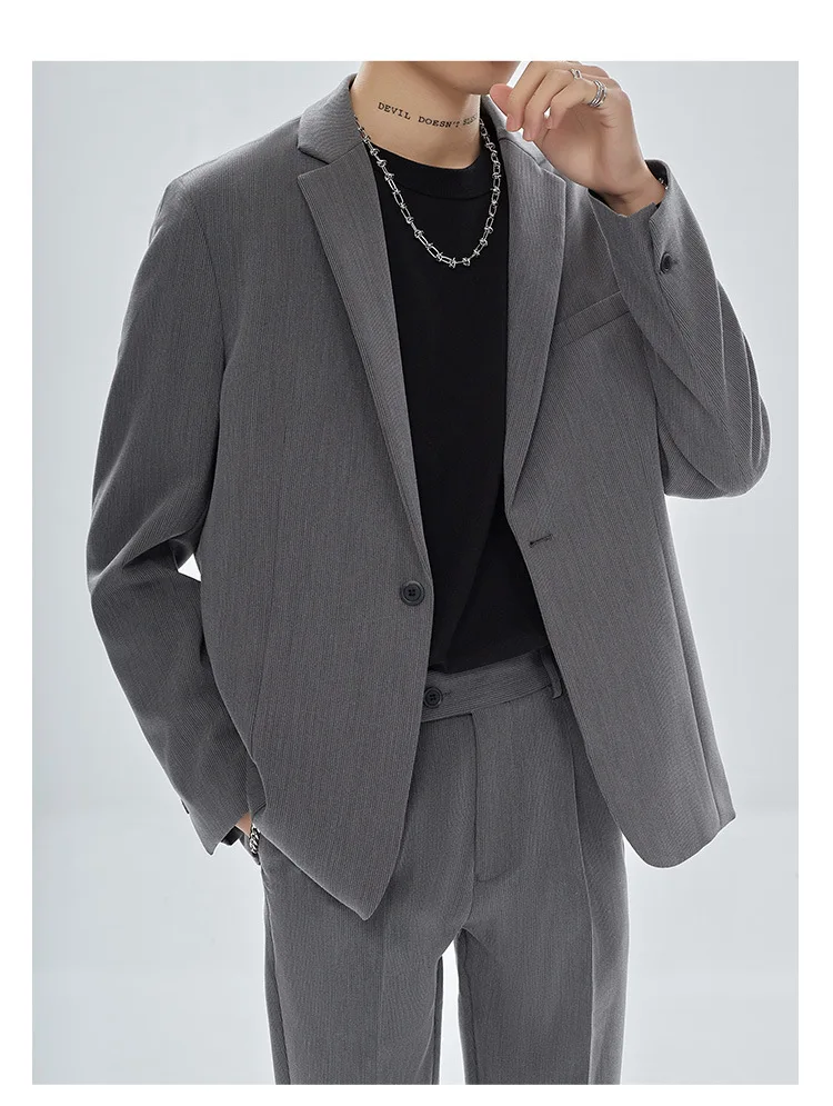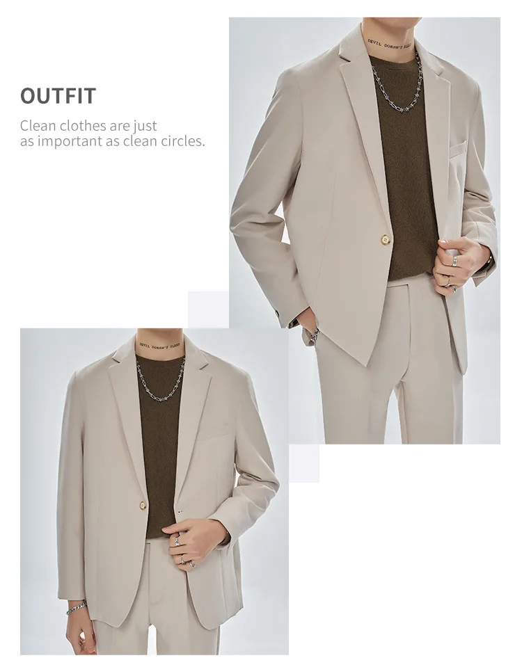 Casual Two-Piece Korean-Style Single Breasted Jacket for Men High-Style Drop Sense Loose Fit Slight Mature Look