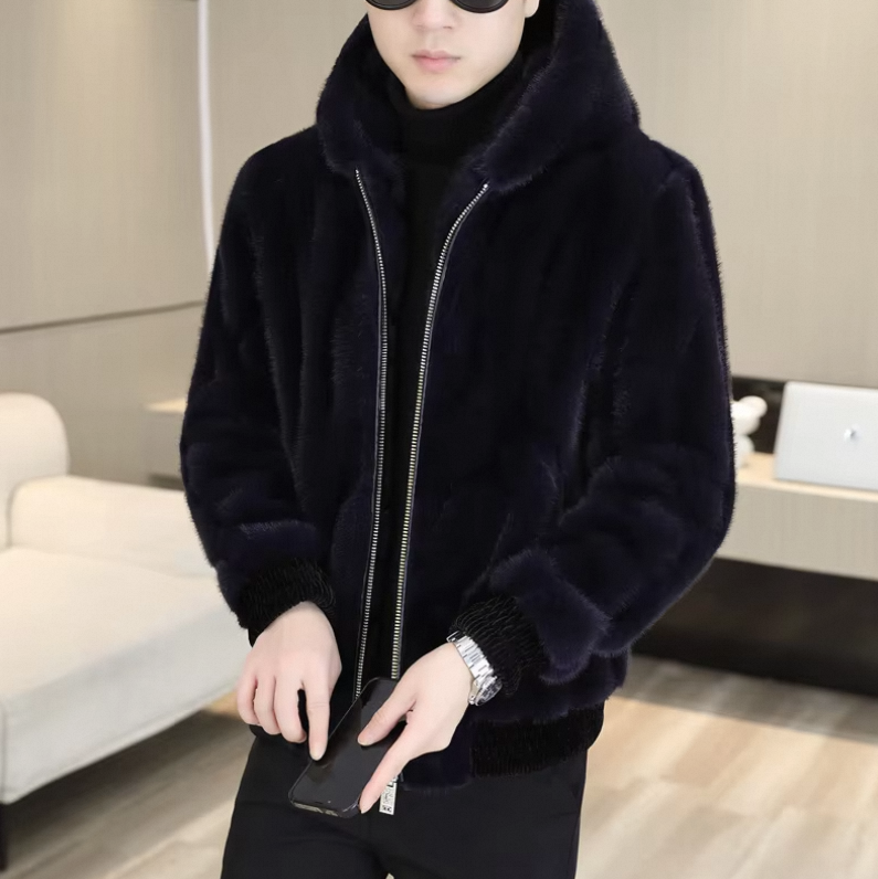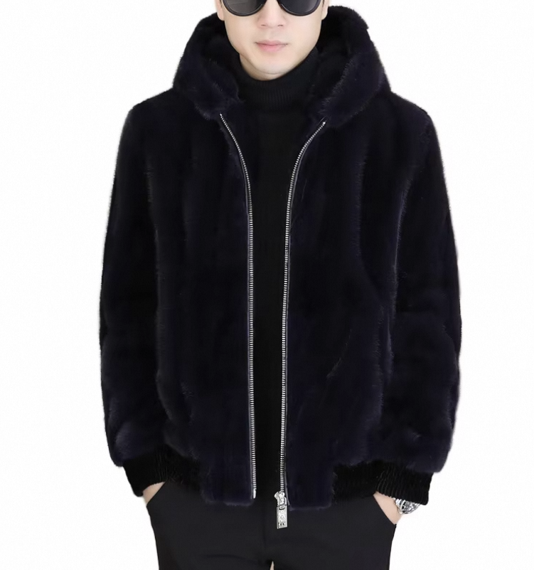 Clothing Manufacturers Custom Custom Winter High Collar Black Bomber Fur Jacket for Men