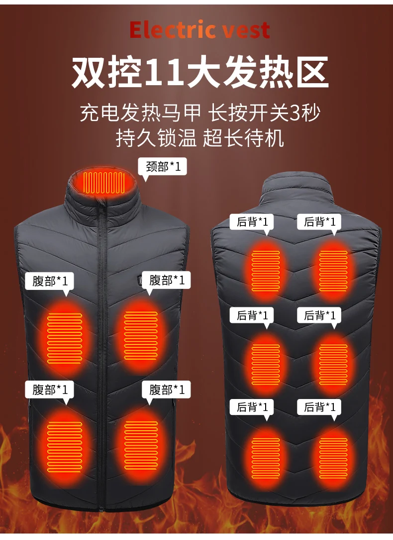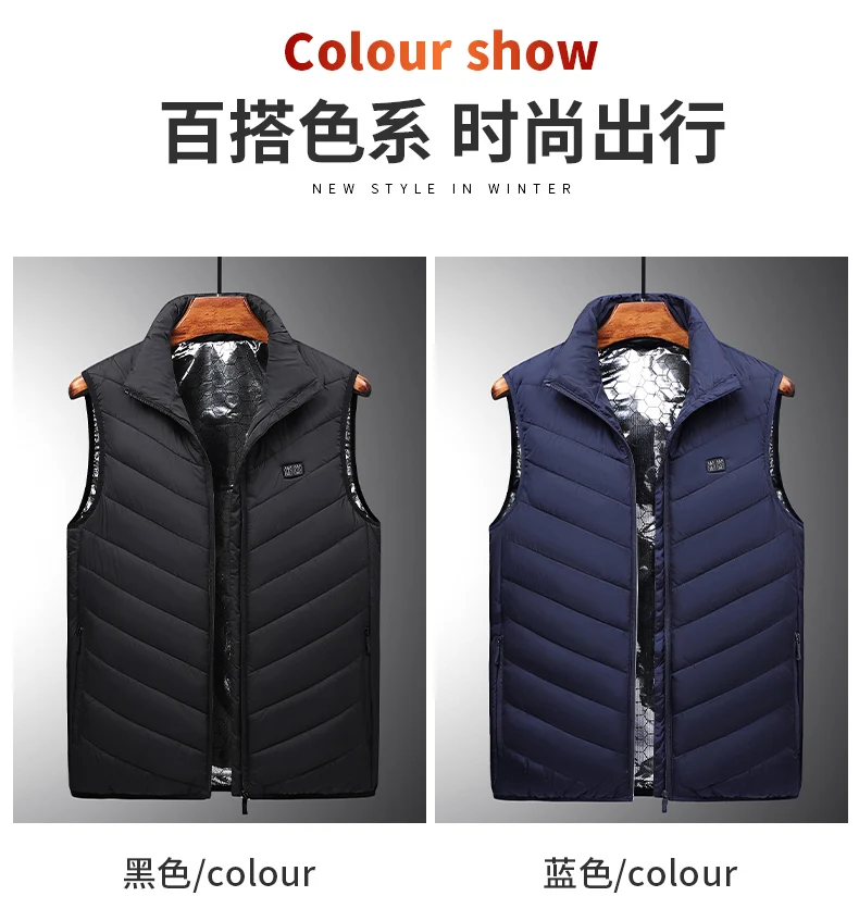 Custom Unisex Waterproof Winter Vest with Intelligent USB Heating Adjustable Hidden Button Safety Style Jacket