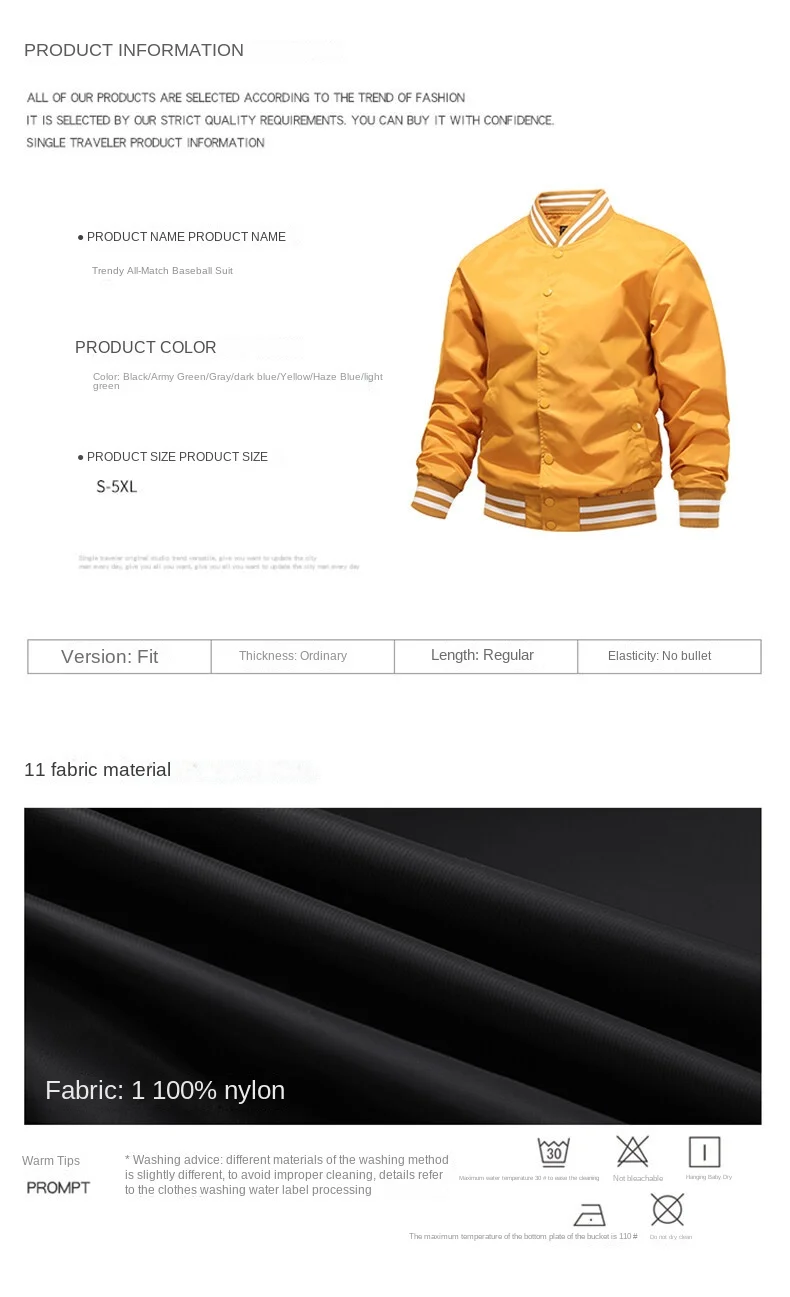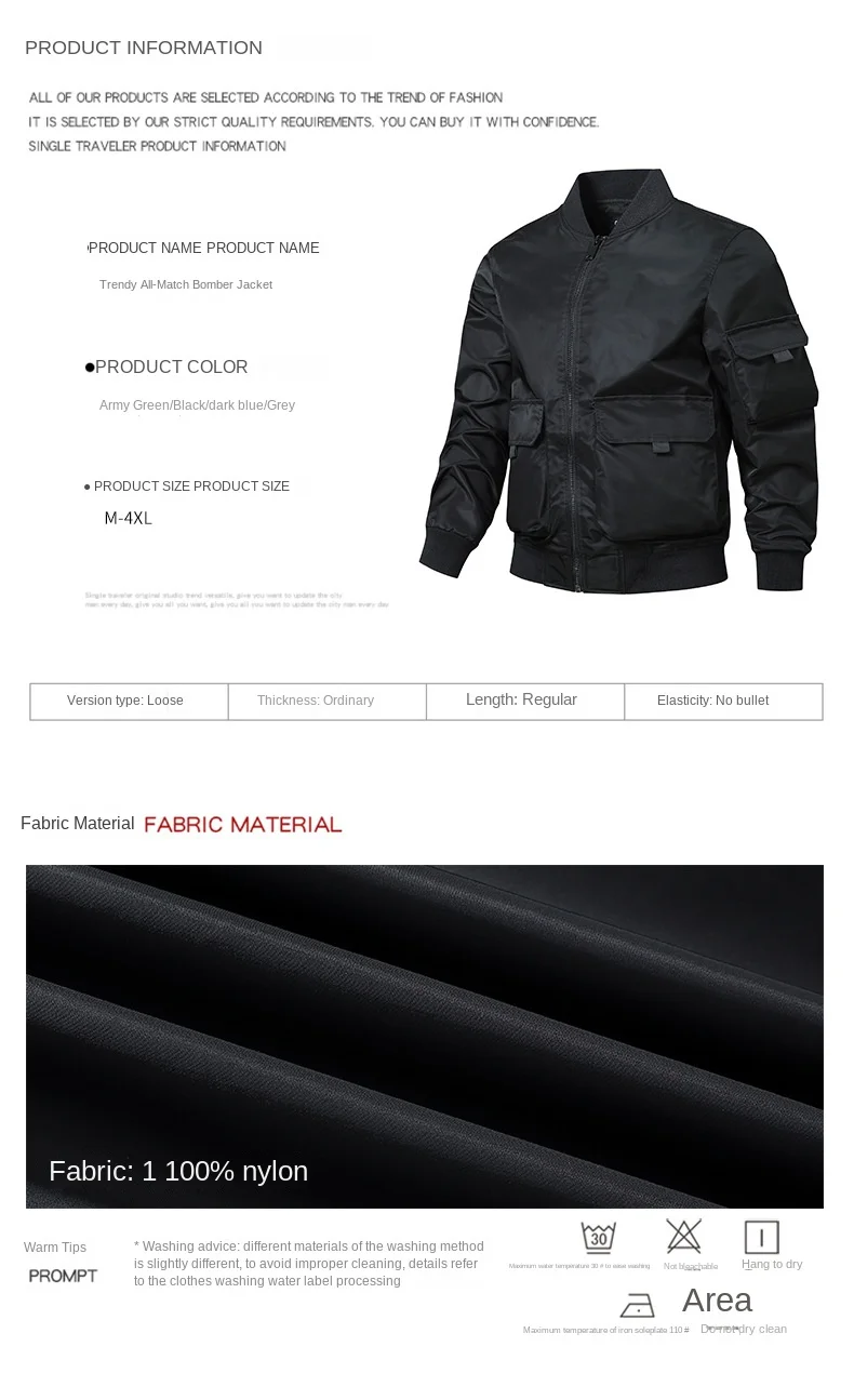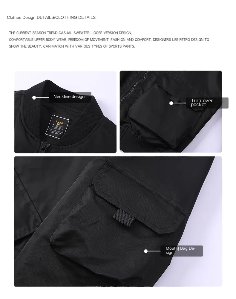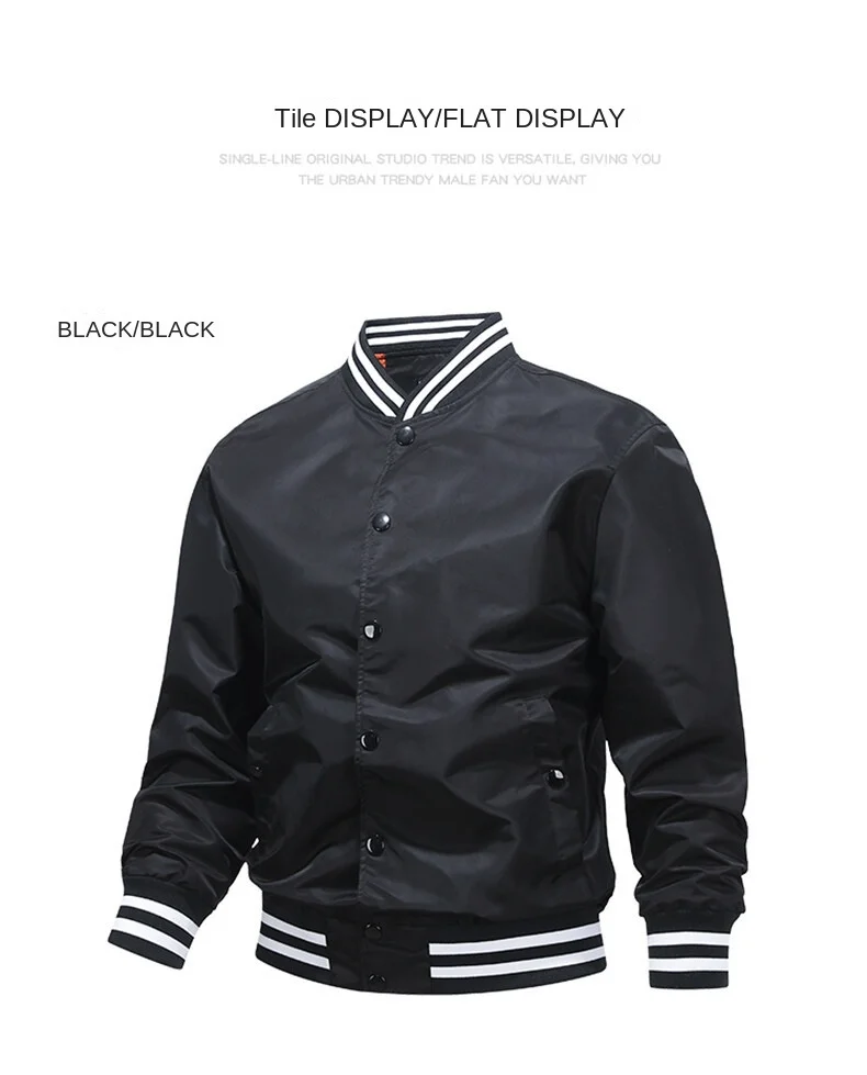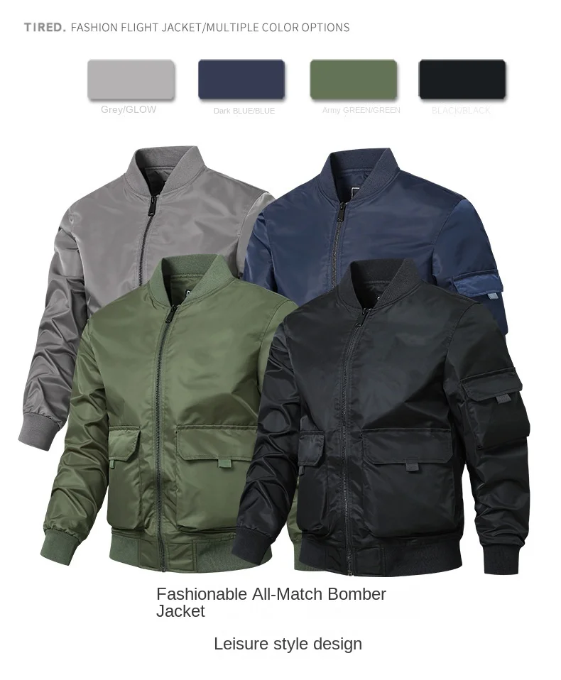 Customizable Men’s Slim Fit Bomber Jacket Zipper Stand Embroidery Pocket-Windproof Breathable Canvas-for Spring Autumn Winter