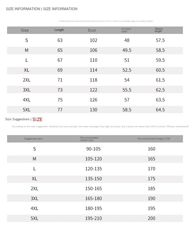| Size | S, M, L, XL, 2XL, 3XL, 4XL, 5XL |