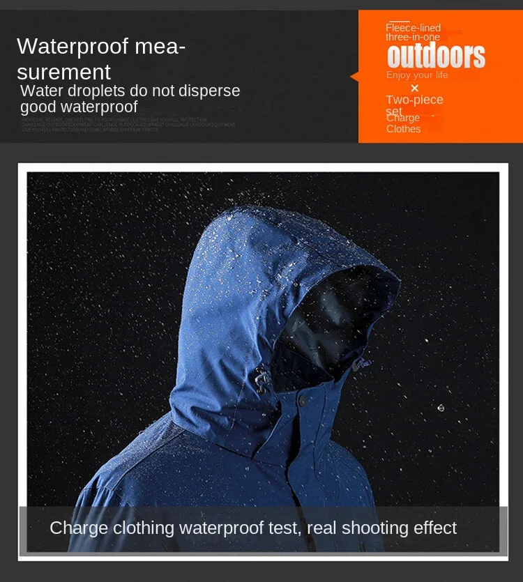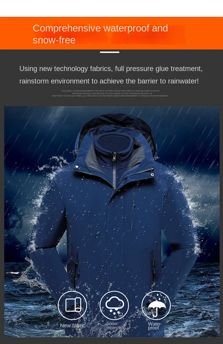 Free Shipping on Trendy Unisex Three-in-One Detachable Winter Jacket Windproof Waterproof Outdoor Clothing Men Women Long Design