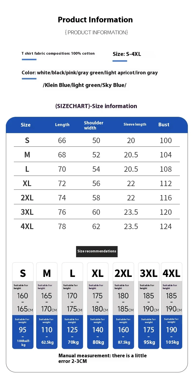 S, M, L, XL, 2XL, 3XL, 4XL