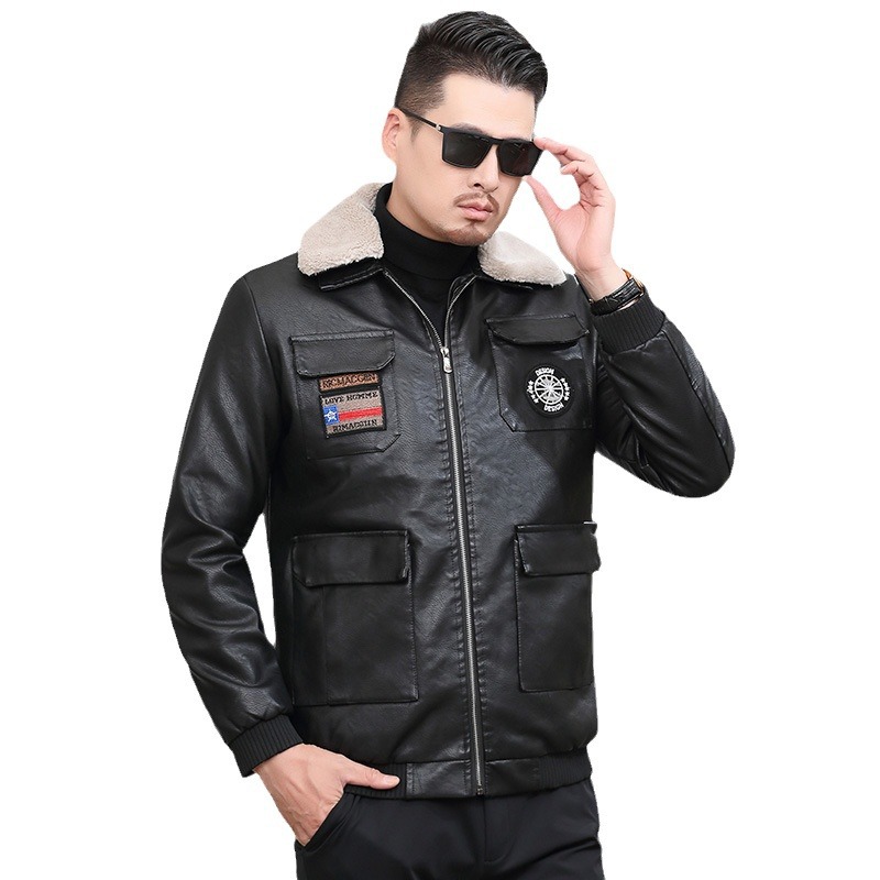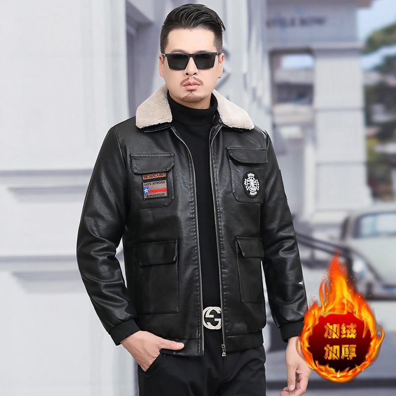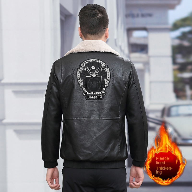 European Station’s Popular Men’s Winter Jacket Thickened Fleece-Lined Leather Coat Large Embroidery ODM All Sizes for