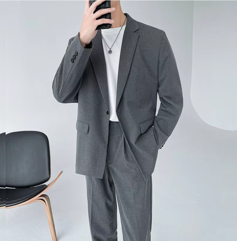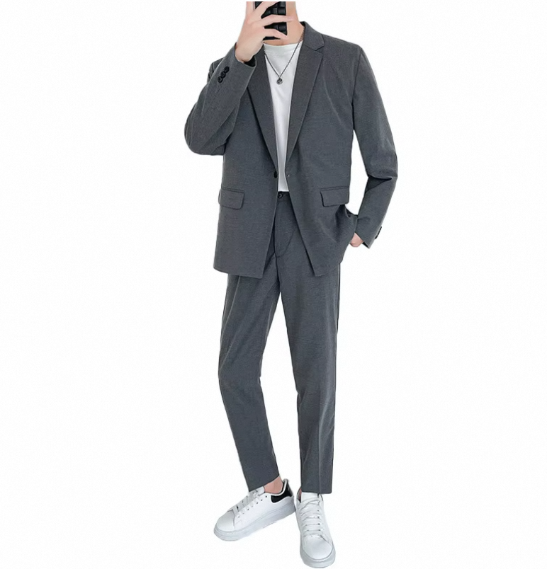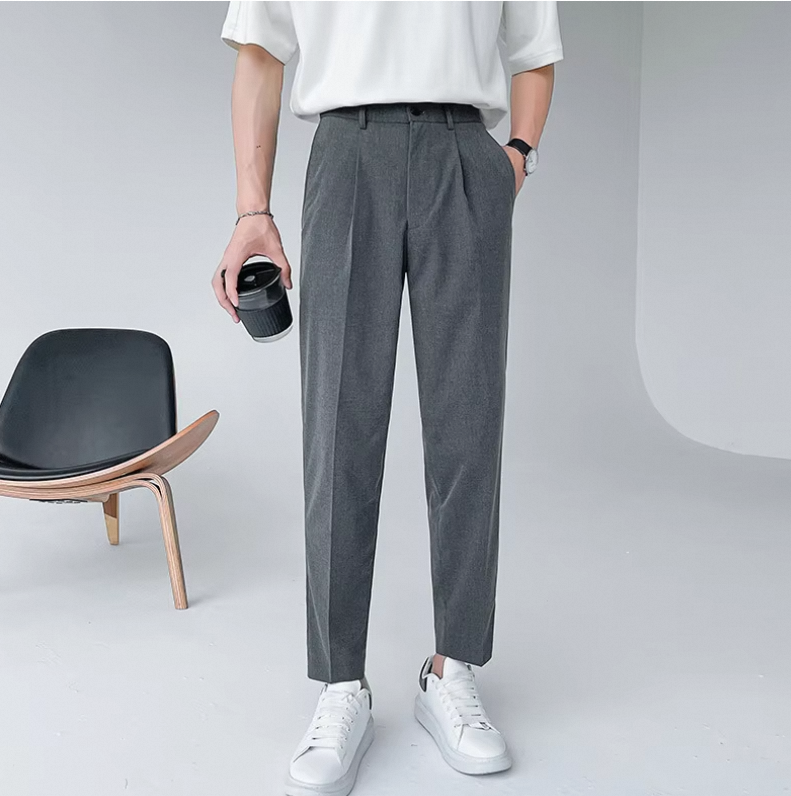 2024 Men’s High-End Korean Slim Fit Business Suit Single Breasted Zipper Fly Pants Light Familiar Custom Print Worsted Foreign