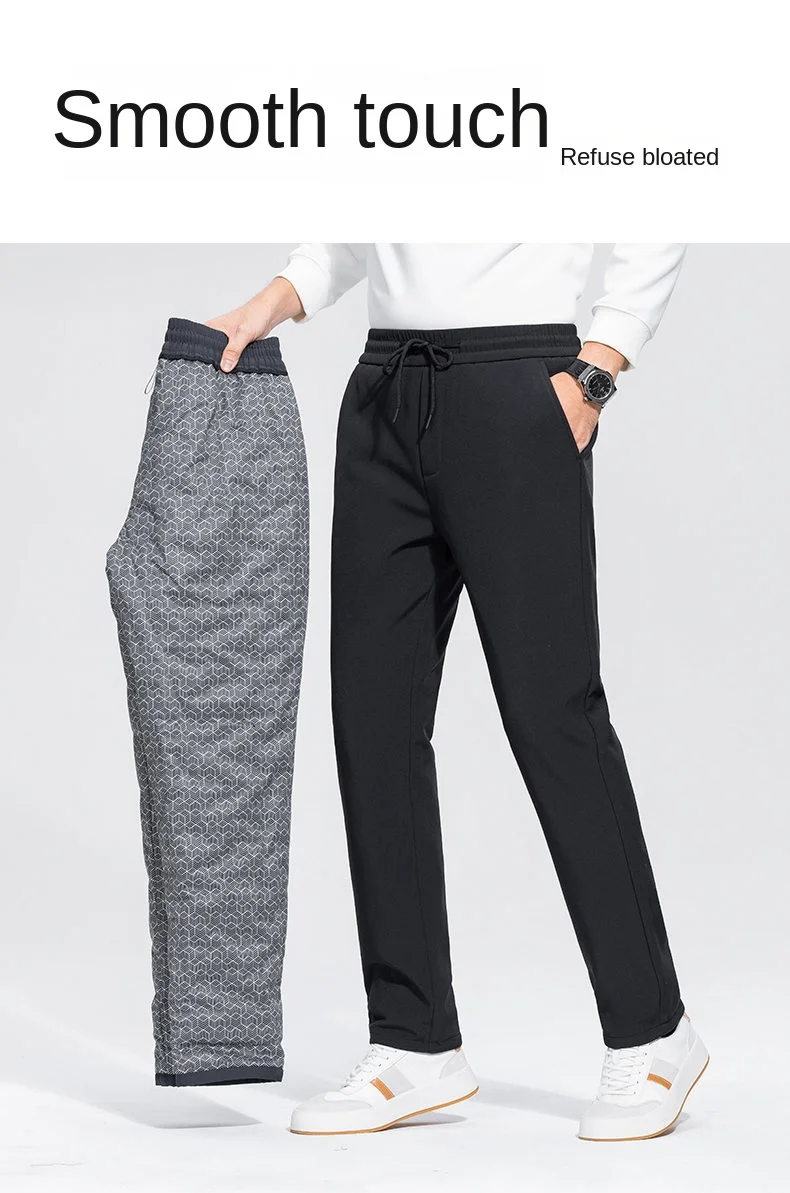 GB Men’s Casual Mid-Waist Sweatpants White Duck Pants Fleece-Lining Thickened Jeans Outdoor High Street Warm Trend XXL Size