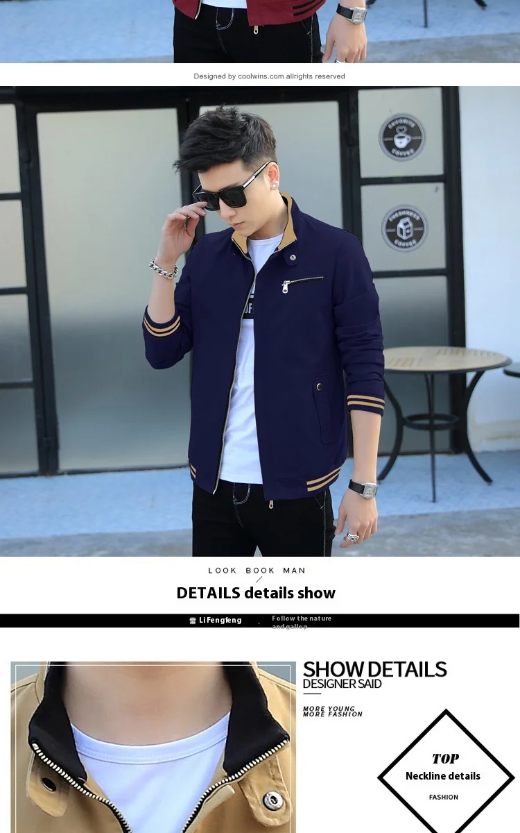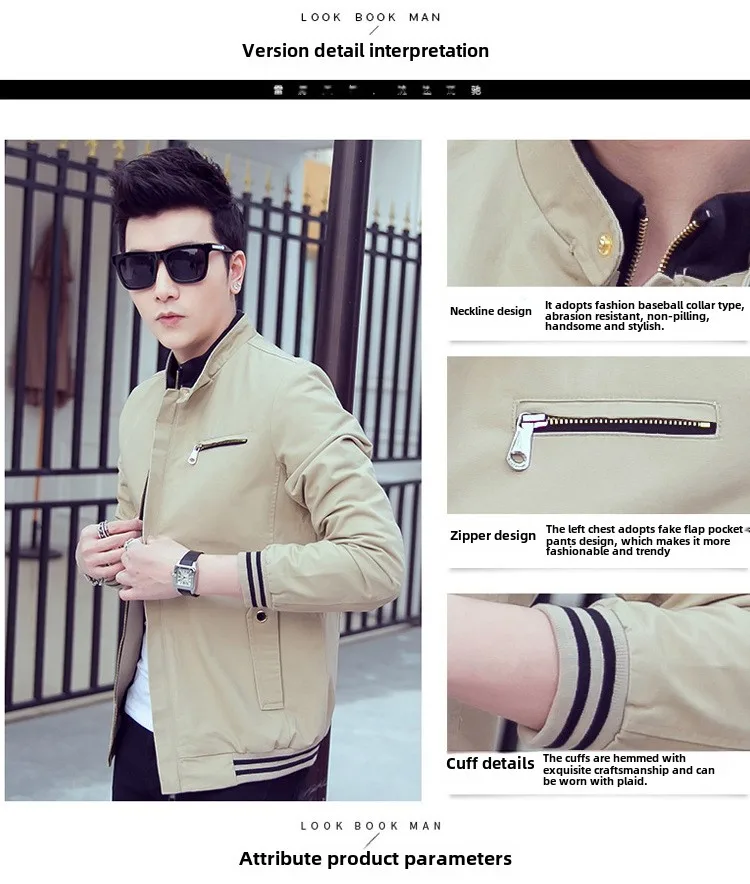 Handsome K-Style Men’s Casual Coat for Spring Autumn Breathable Woven Outwear with Fashionable Tops Easy to Match Outerwear Set